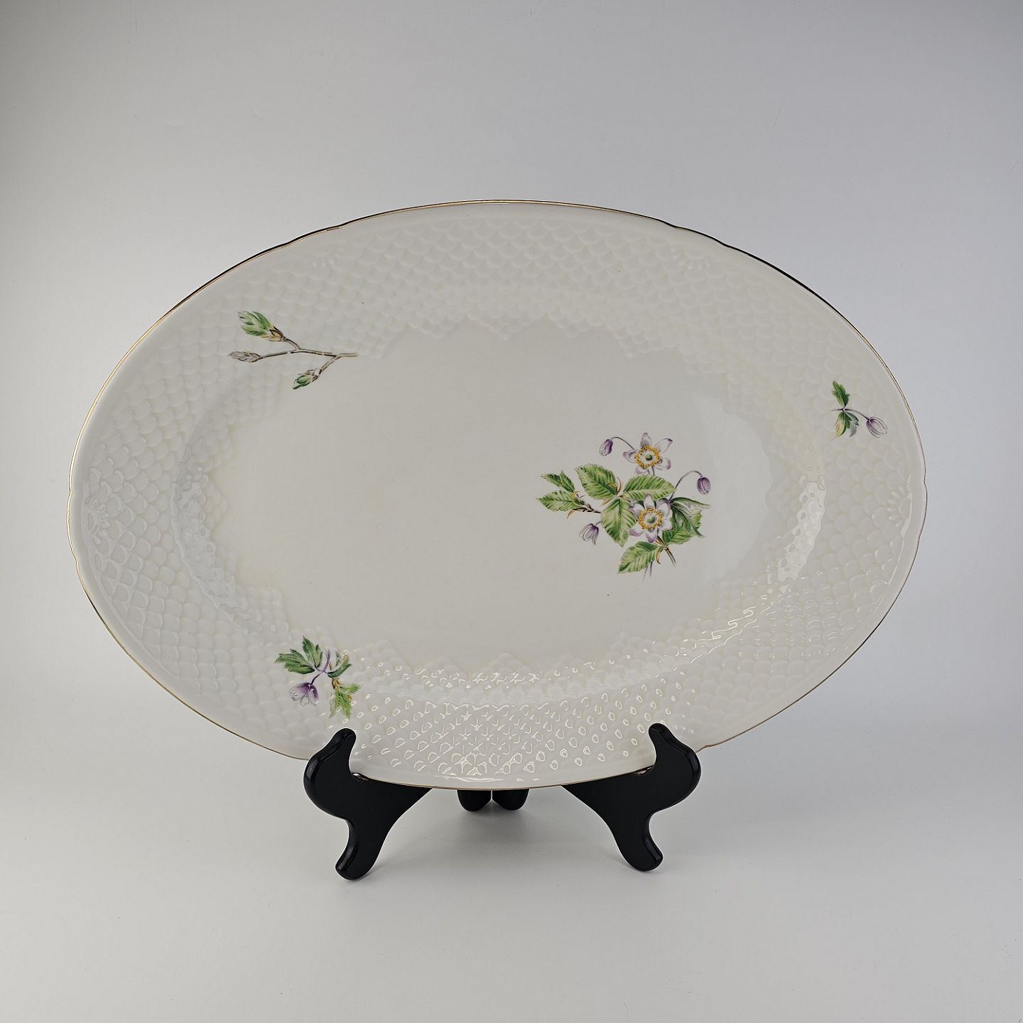 Beskrivelse: Ovalt fad i porcelæn fra stellet Frigga Anemone