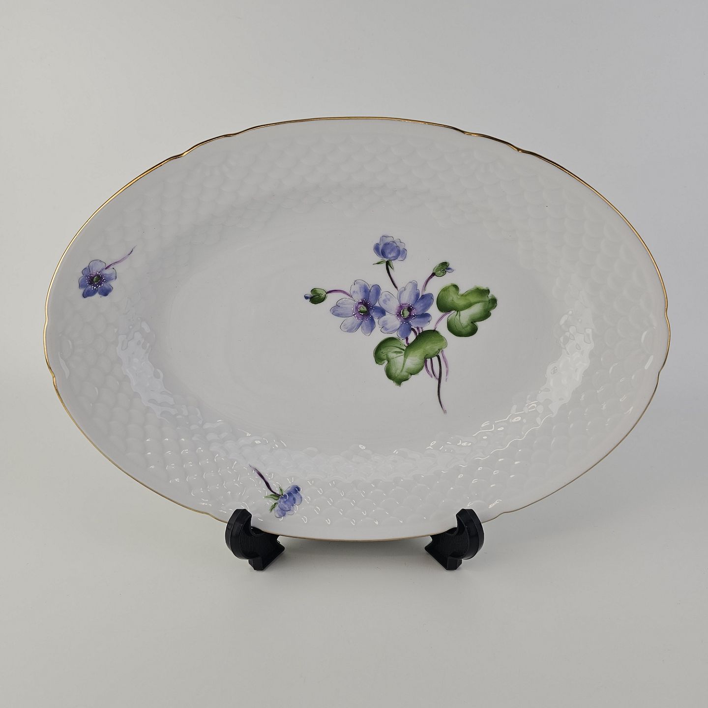 Beskrivelse: Ovalt fad i porcelæn fra stellet Antonius