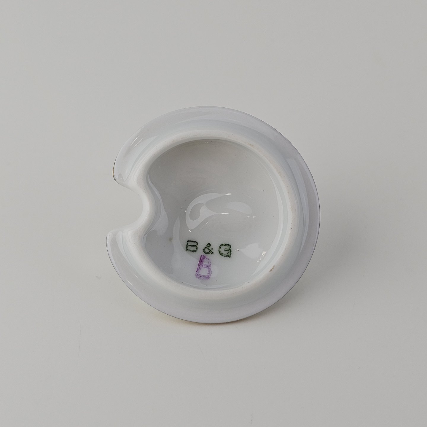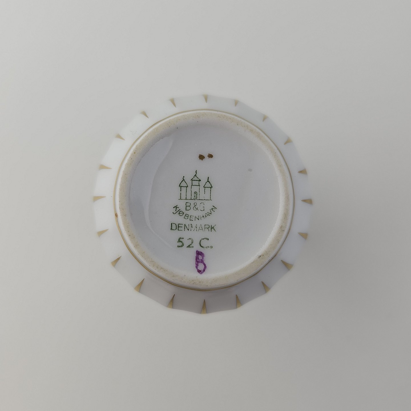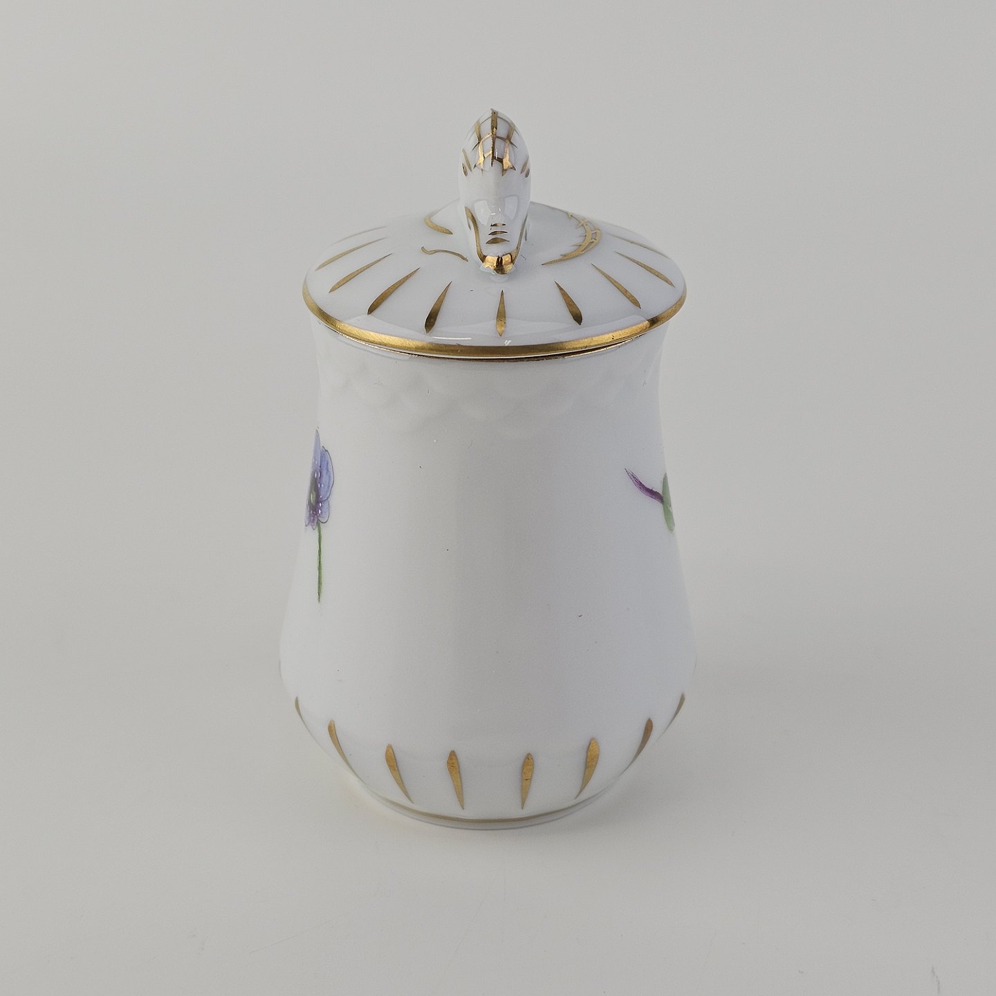 Beskrivelse: Sennepskrukke i porcelæn fra stellet Antonius