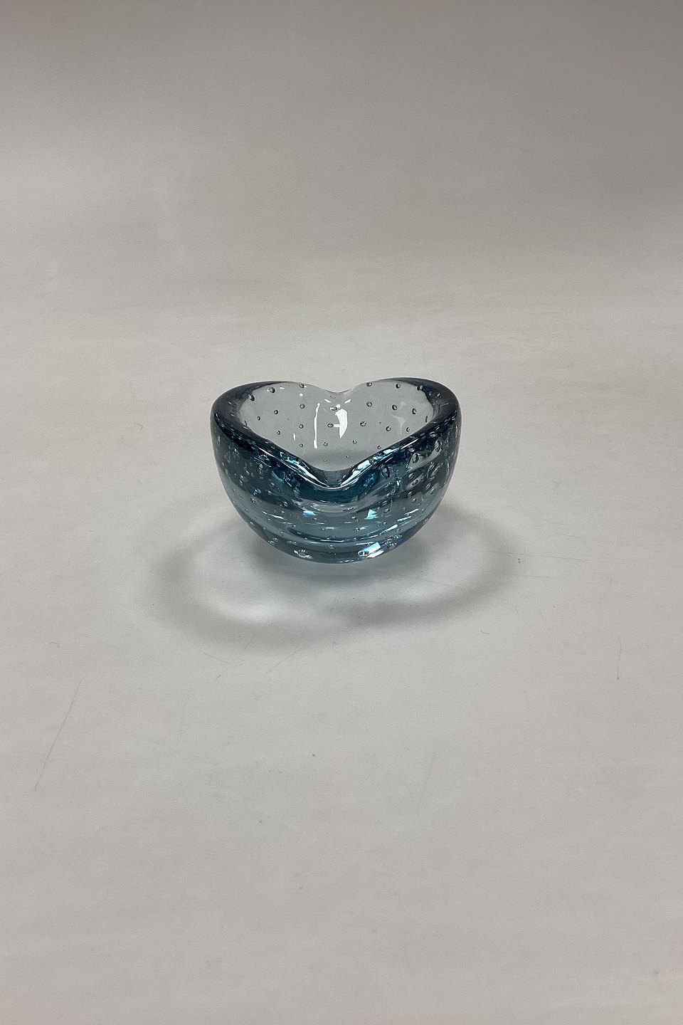 Beskrivelse: Lille Glasskål med bobler. Sandsynligvis skandinavisk fra 1950´erne. Farve: Lyseblå. Lettere brugsspor i bunden.