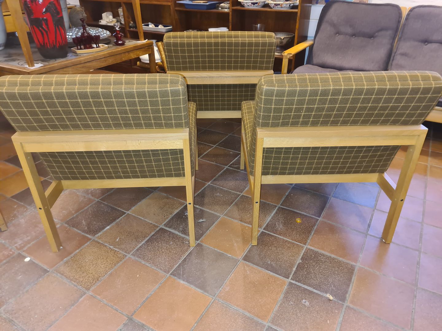 Beskrivelse: Ole Gjerløv Knudsen/ Torben Lind sæt af 3 Moduline lounge stole udført i eg og betrukket med uldstof. Fremstillet hos France & Søn ca. 1970'erne.