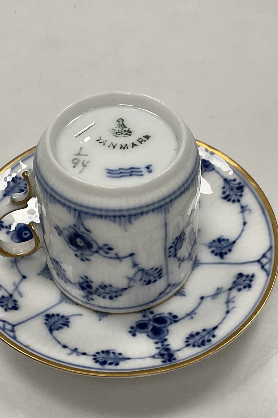 Royal Copenhagen Musselmalet Riflet med Guld Mokka Kop No. 94