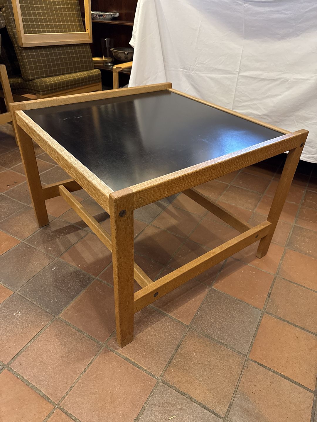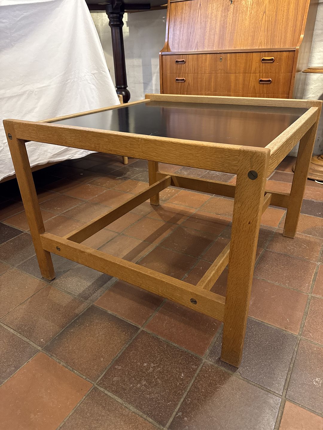Beskrivelse: Børge Mogensen sofabord model 5376. Udført med stel af eg samt plade af sort Formica. Fremstillet hos Frederica Stolefabrik 1968.