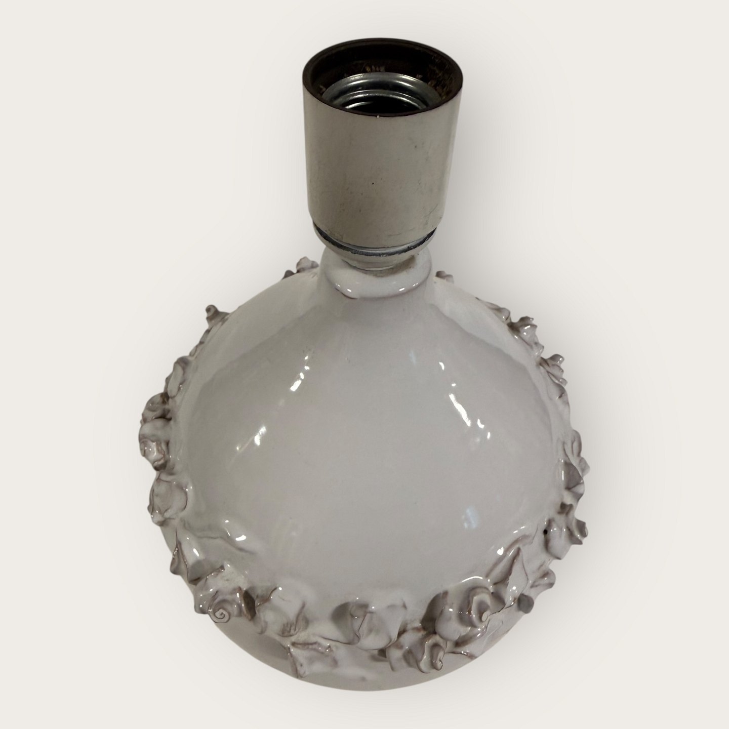Beskrivelse: Torben Keramik, Stor hvid bordlampe med blomsterranke, højde med fatning 27,5cm, signeret Torben Danmark 175 *Fin stand*