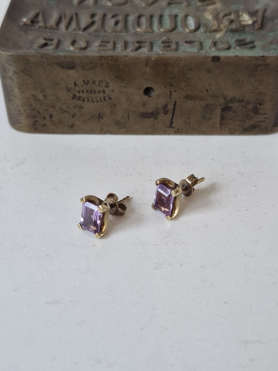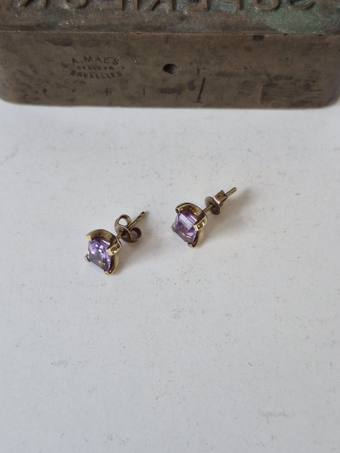 Beskrivelse: Vintage ametyst ørestikker i 8 kt guld