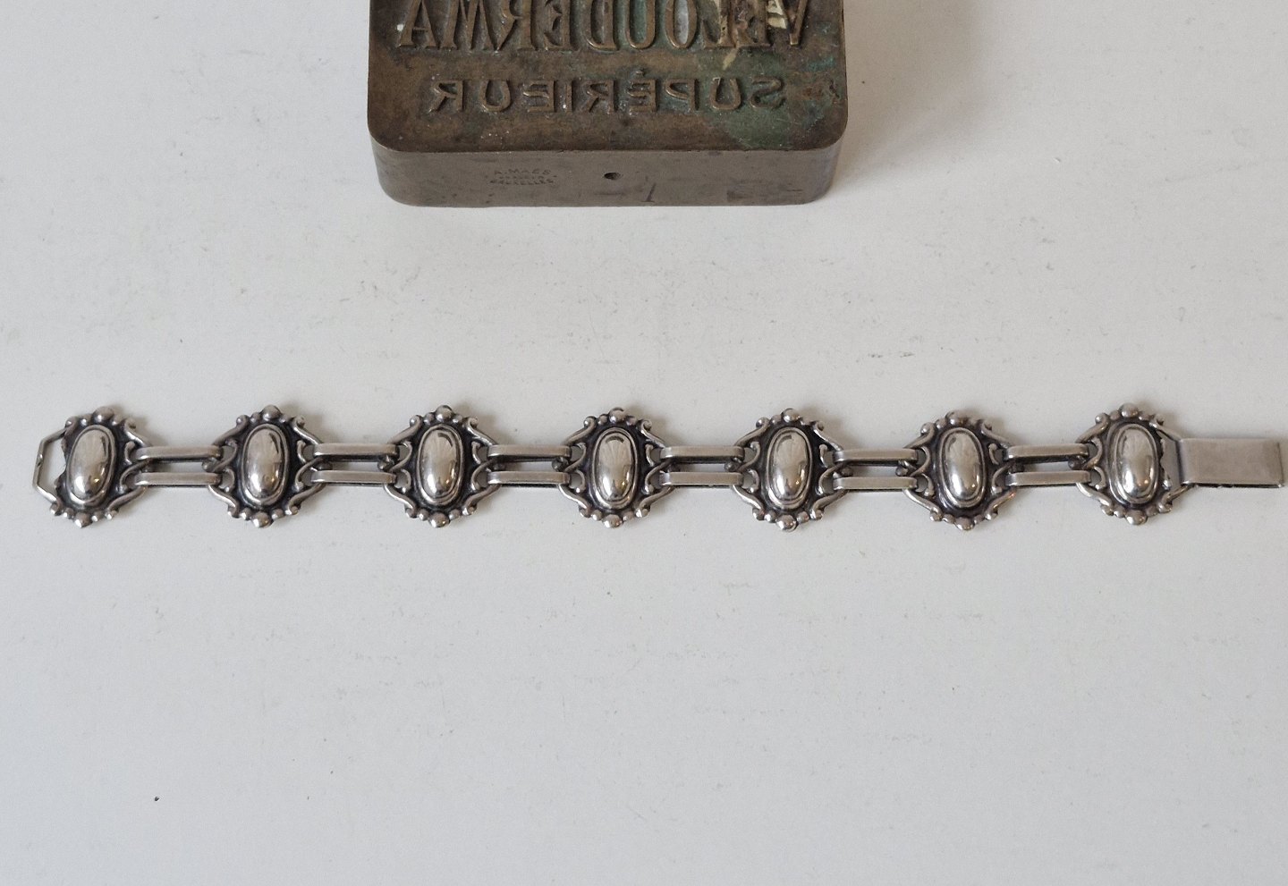 Smukt sølv armbånd i skønvirkestil produceret af Schølle