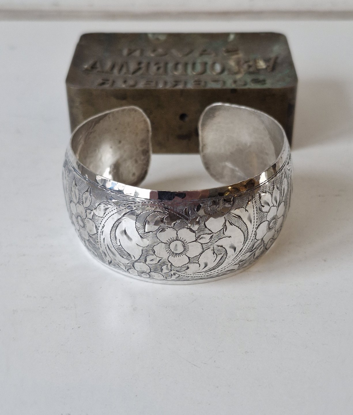 Vintage armring i sølv, smukt ciseleret blomster motiv