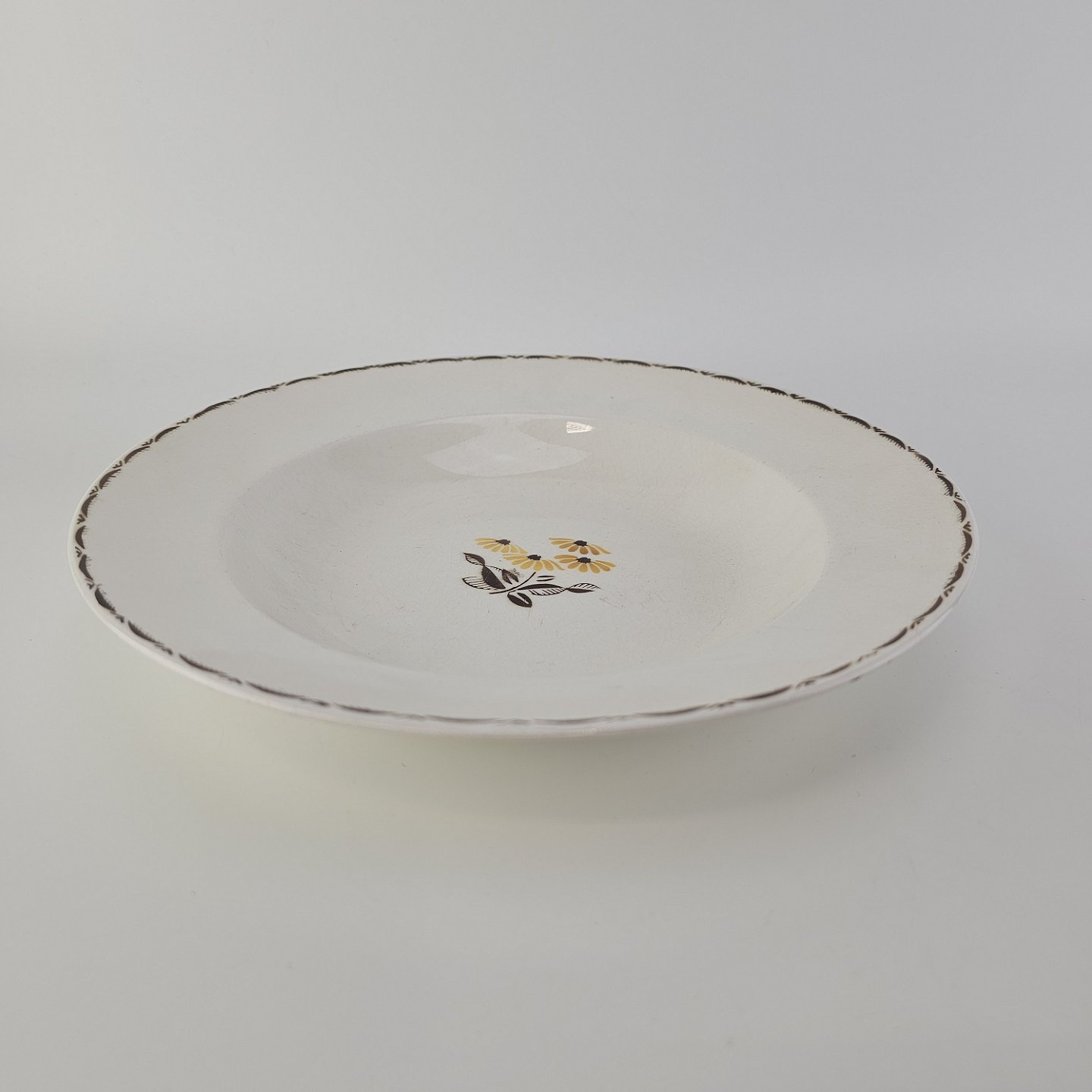 Beskrivelse: Dyb tallerken i fajance fra stellet Birthe