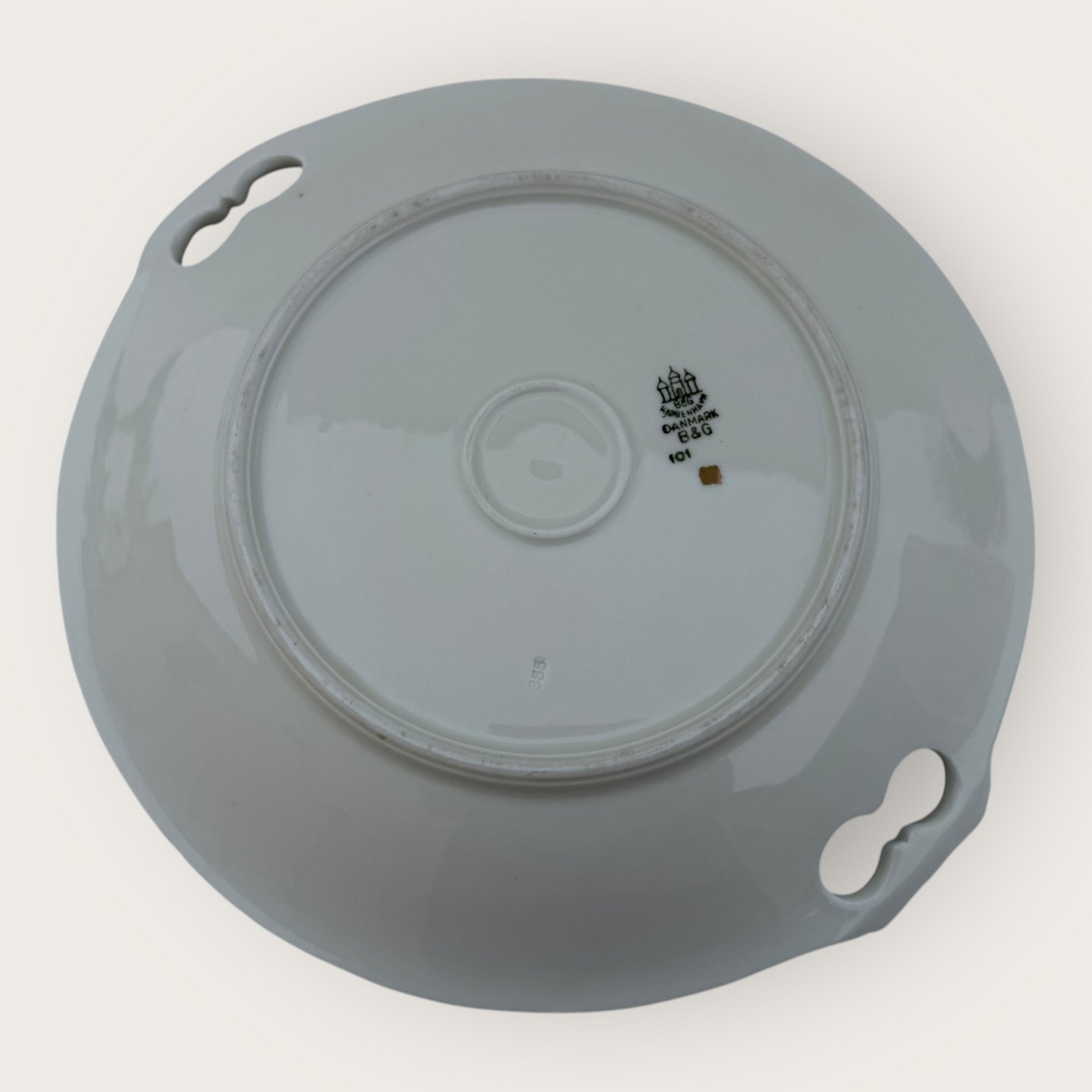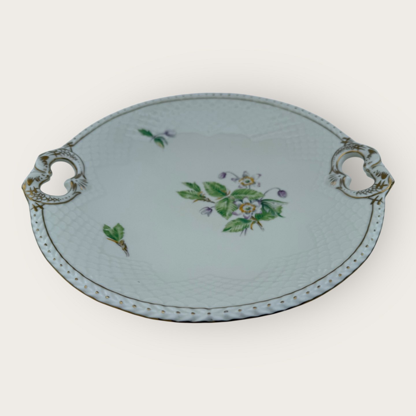 Beskrivelse: Bing & Grøndahl, Frigga, Anemone, # 101, fad med hanke, diameter 26cm, 1. sortering *Pæn stand*