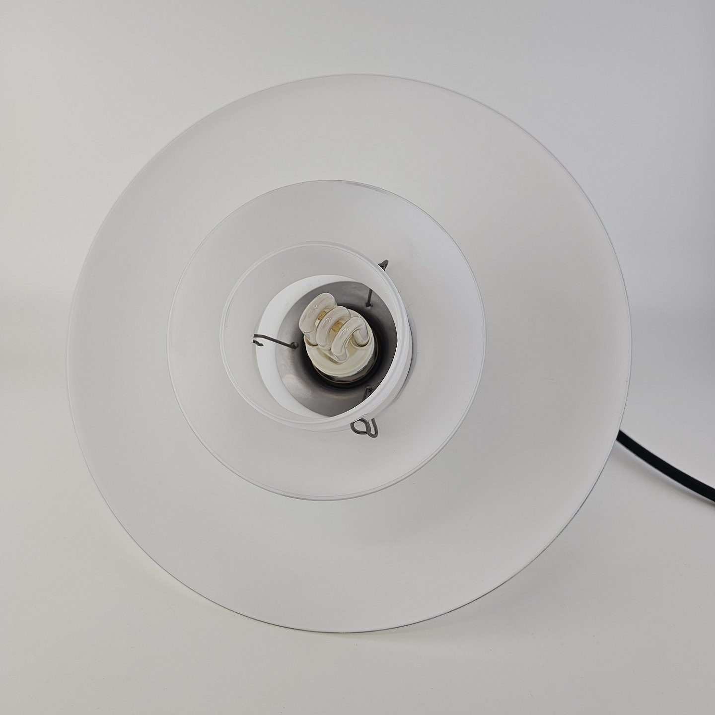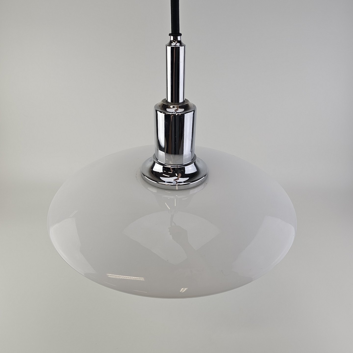Beskrivelse: Loftlampe i hvidt opal glas med fatning i forkromet metal