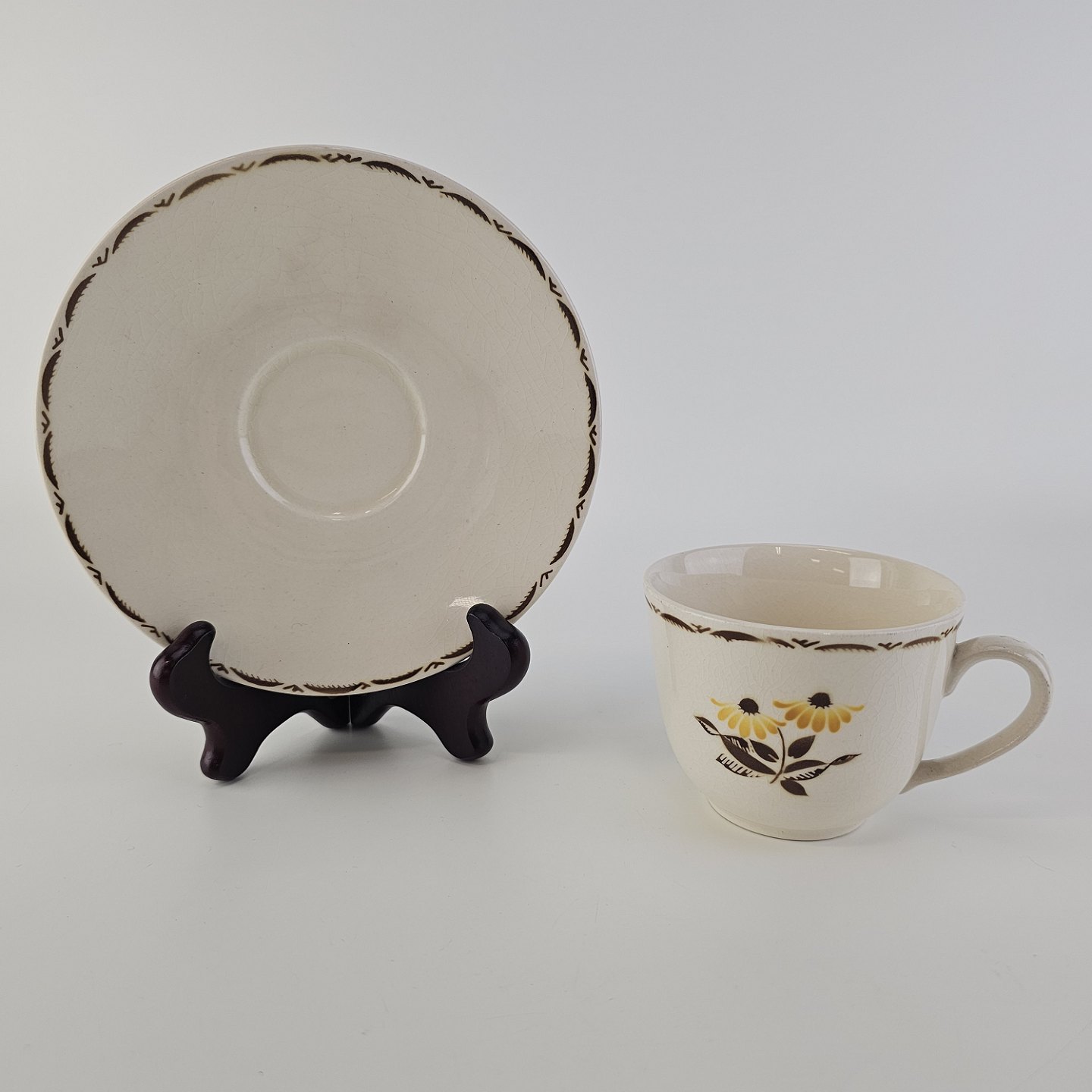 Beskrivelse: Kaffekop med underkop i fajance fra stellet Birthe
