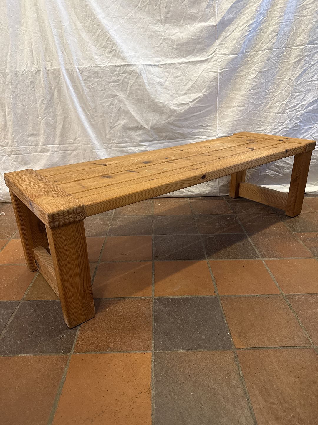 Beskrivelse: Svensk møbeldesign lav bænk udført i massiv fyr.