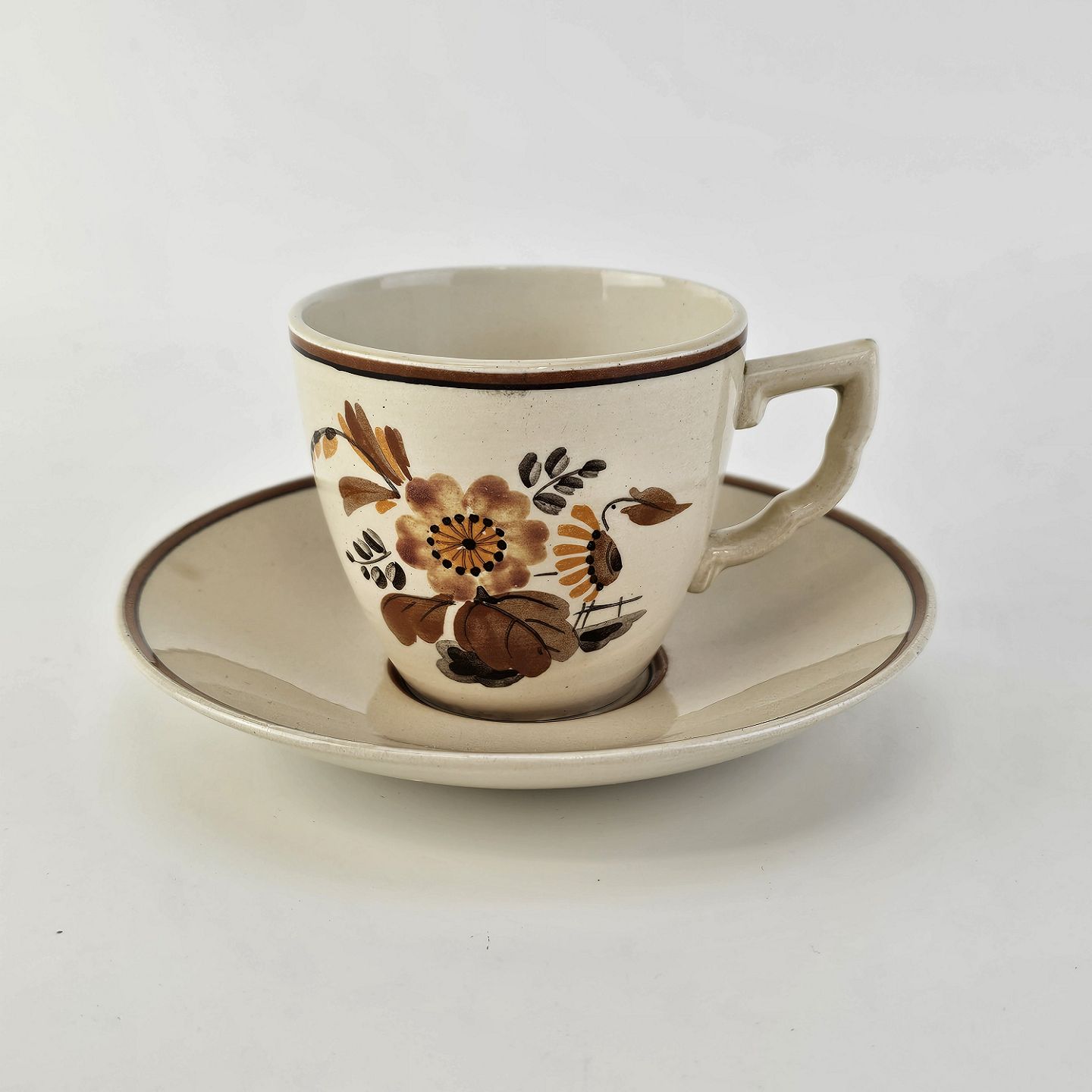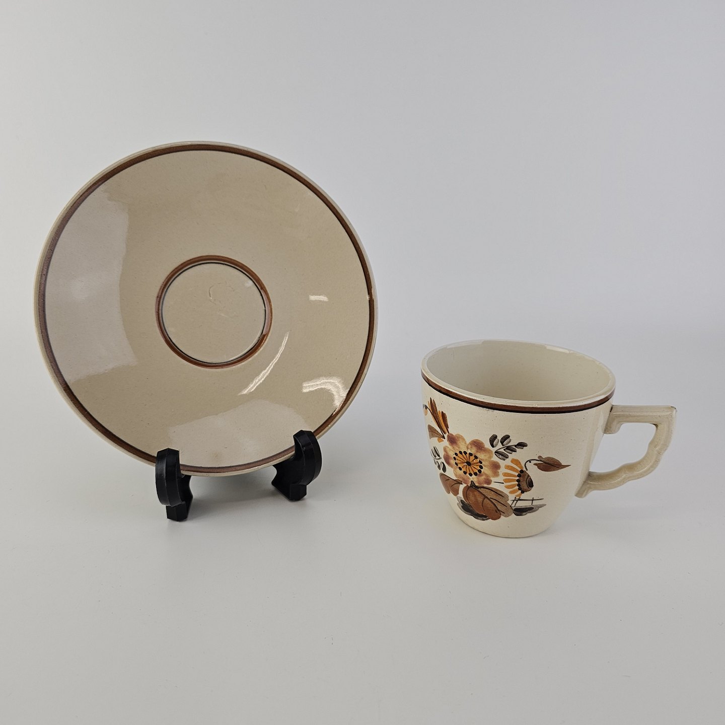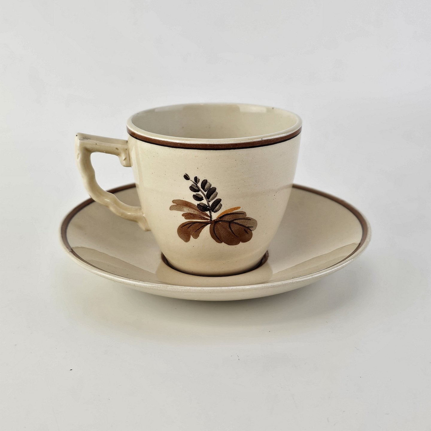 Beskrivelse: Kop med underkop i fajance fra stellet Knud