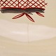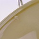 Fajancestel med dekoration af blomsterkurv på gullig baggrund med orangerød kant stribe.