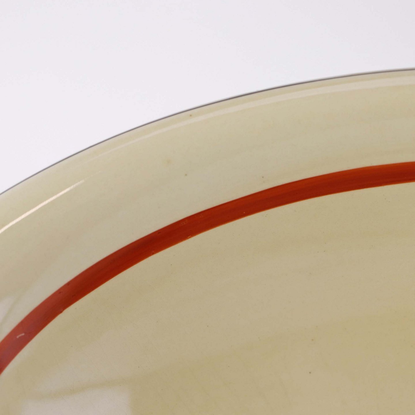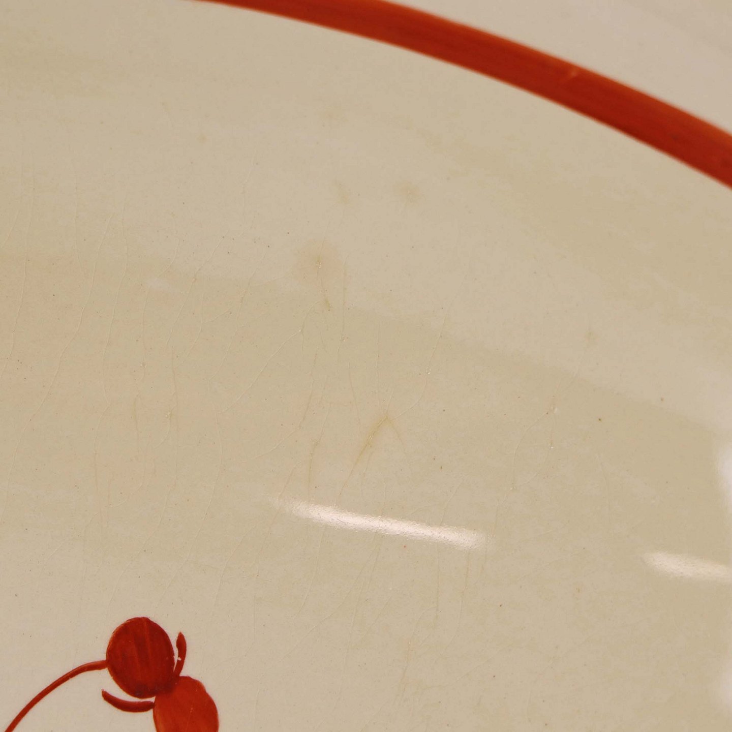 Fremstår med krakeleringer og bruneringer under glasuren.