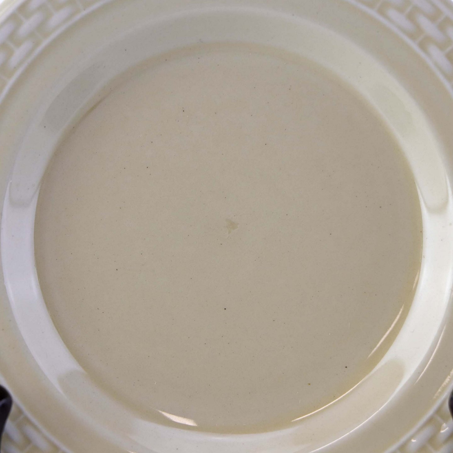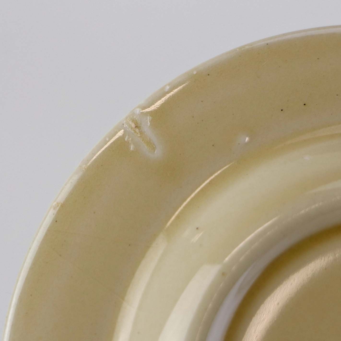 Fremstår med nister under glasuren samt støbningsfejl på bagsiden.