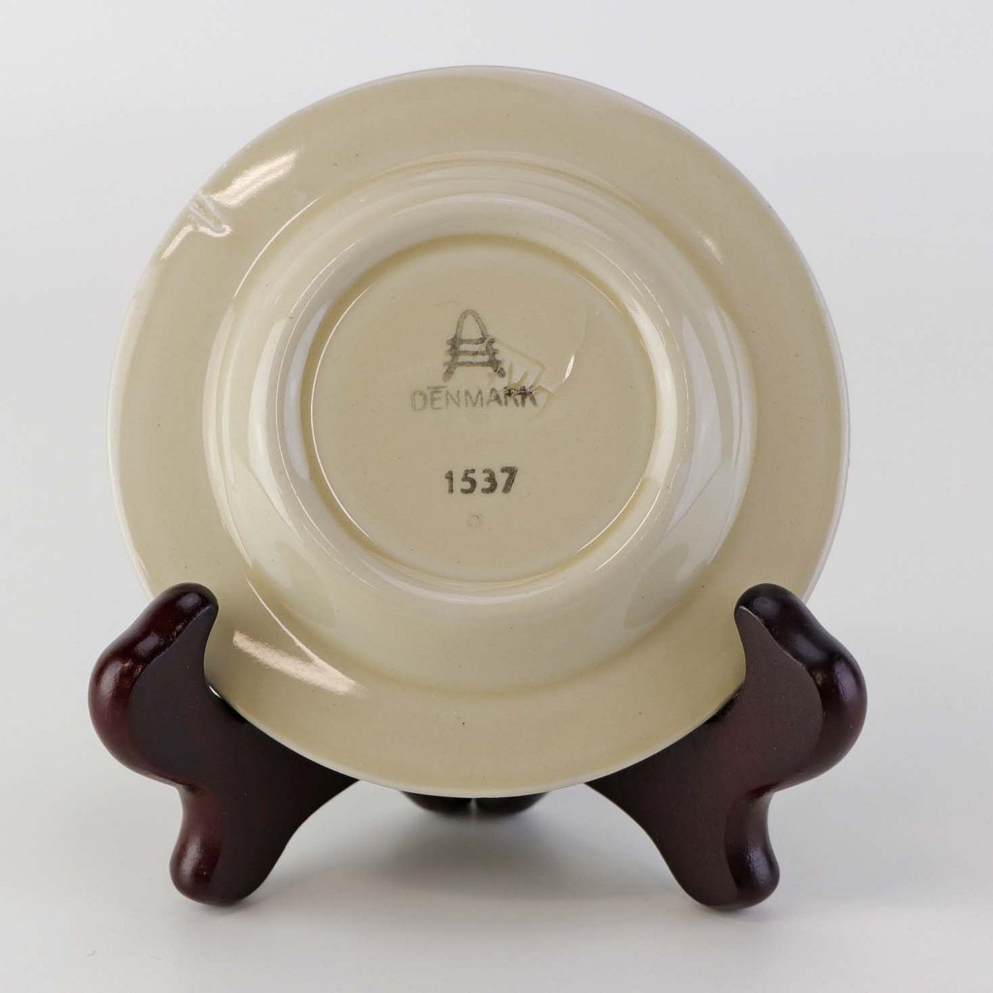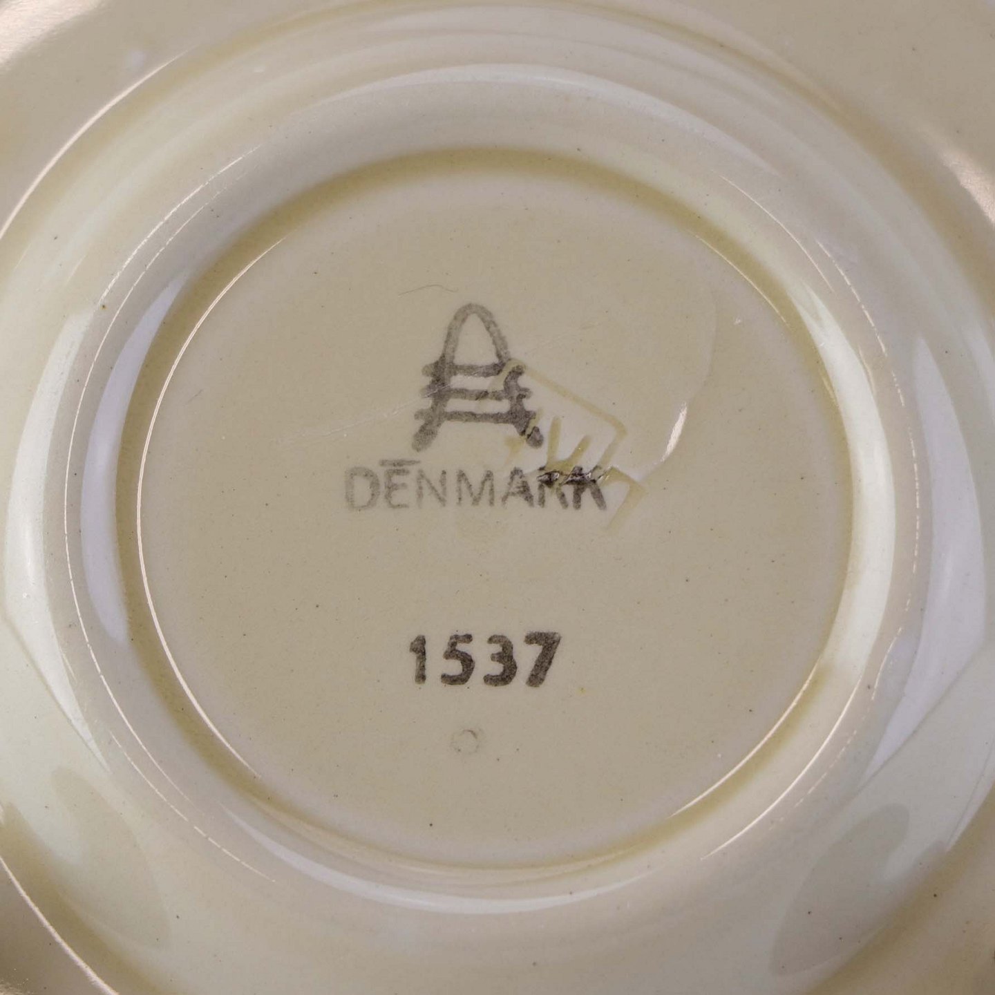 Beskrivelse: Rund kuvertasiet i fajance fra stellet Asserbo fremstillet i perioden 1933-1965. Nr. 1537