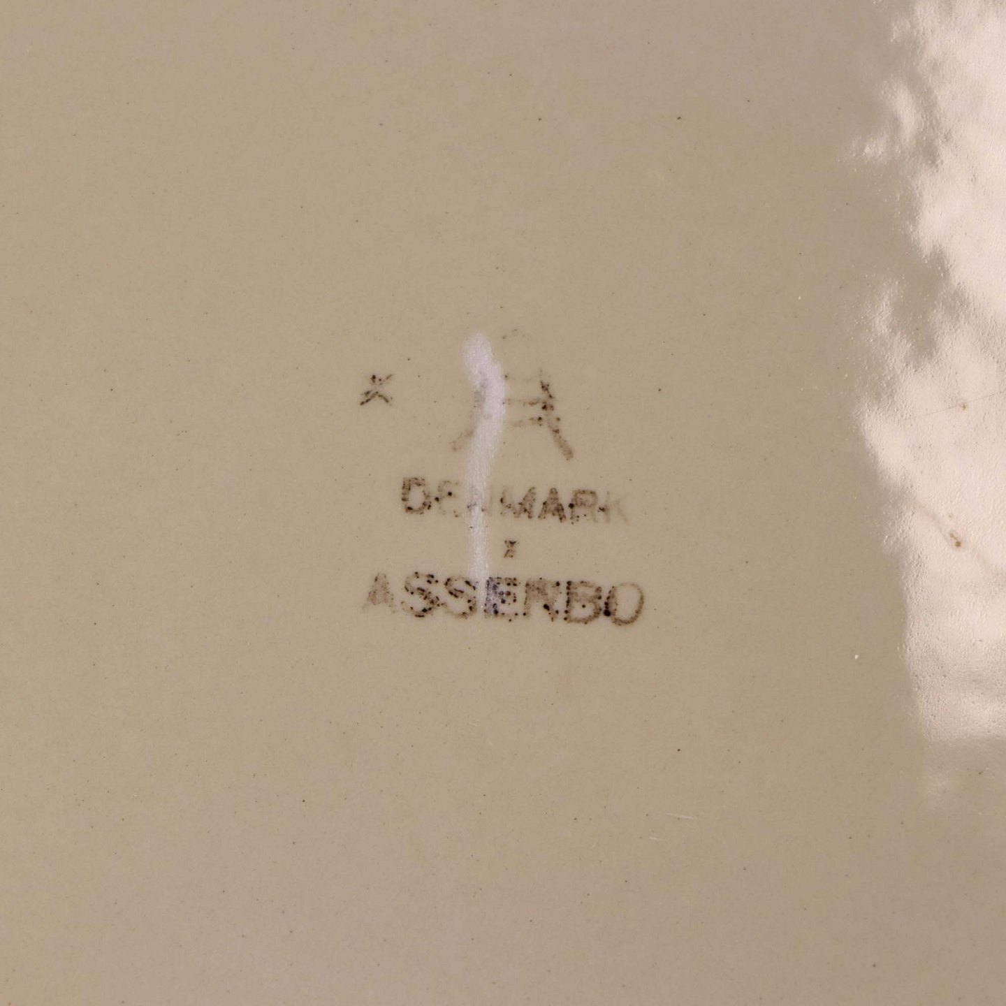 Beskrivelse: Flad tallerken i fajance fra stellet Asserbo fremstillet i perioden 1933-1965