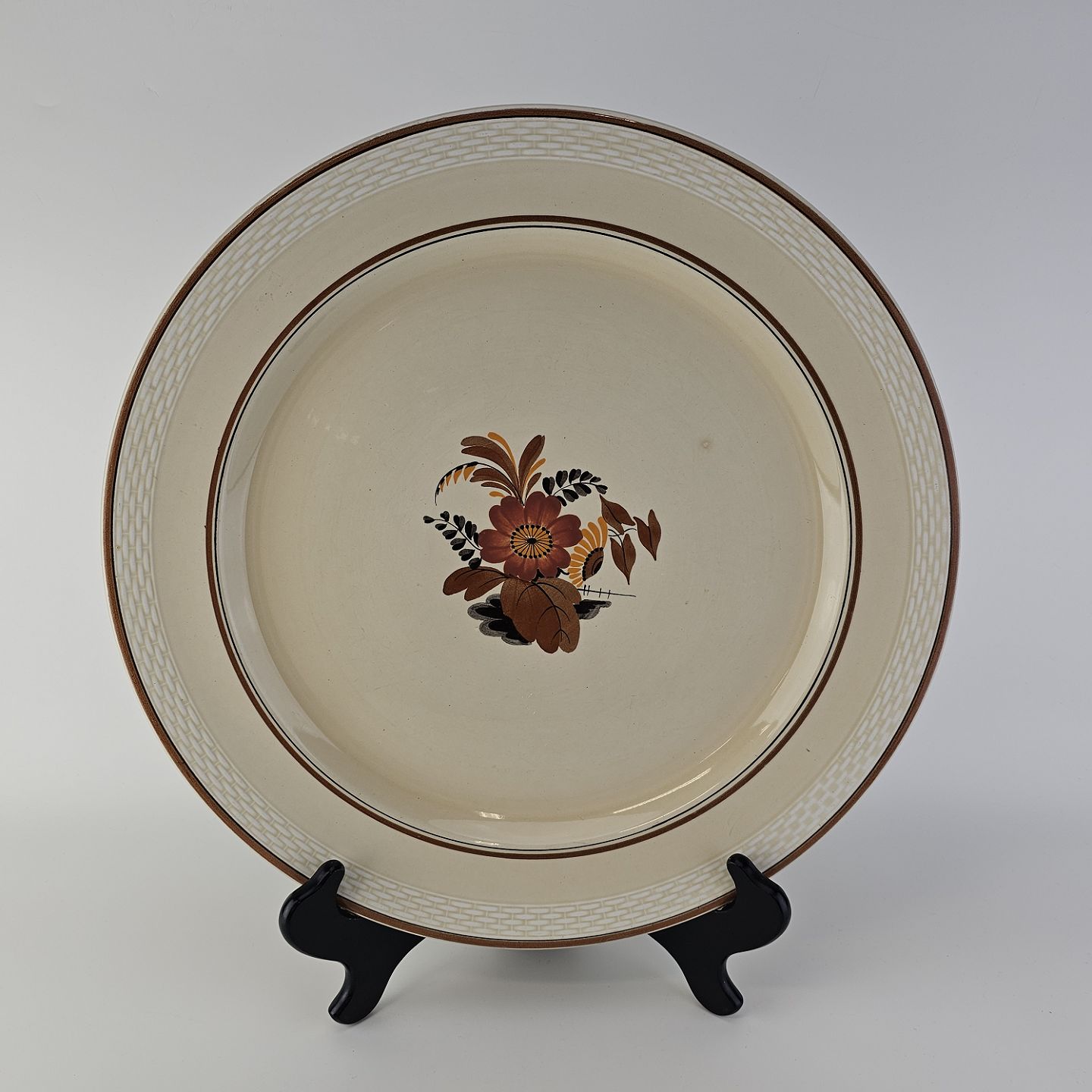 Knud er cremefarvet fajance dekoreret med flettet kant og brune og orange blomster. Stellet blev produceret i år 1934-1963.