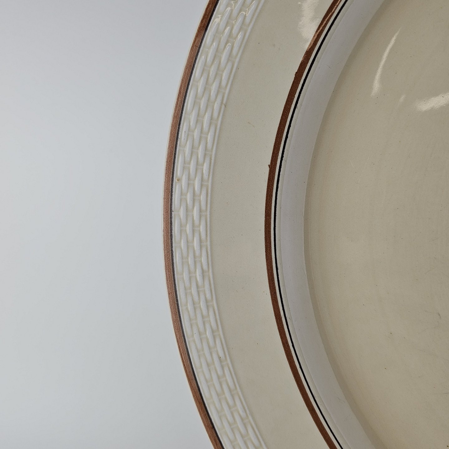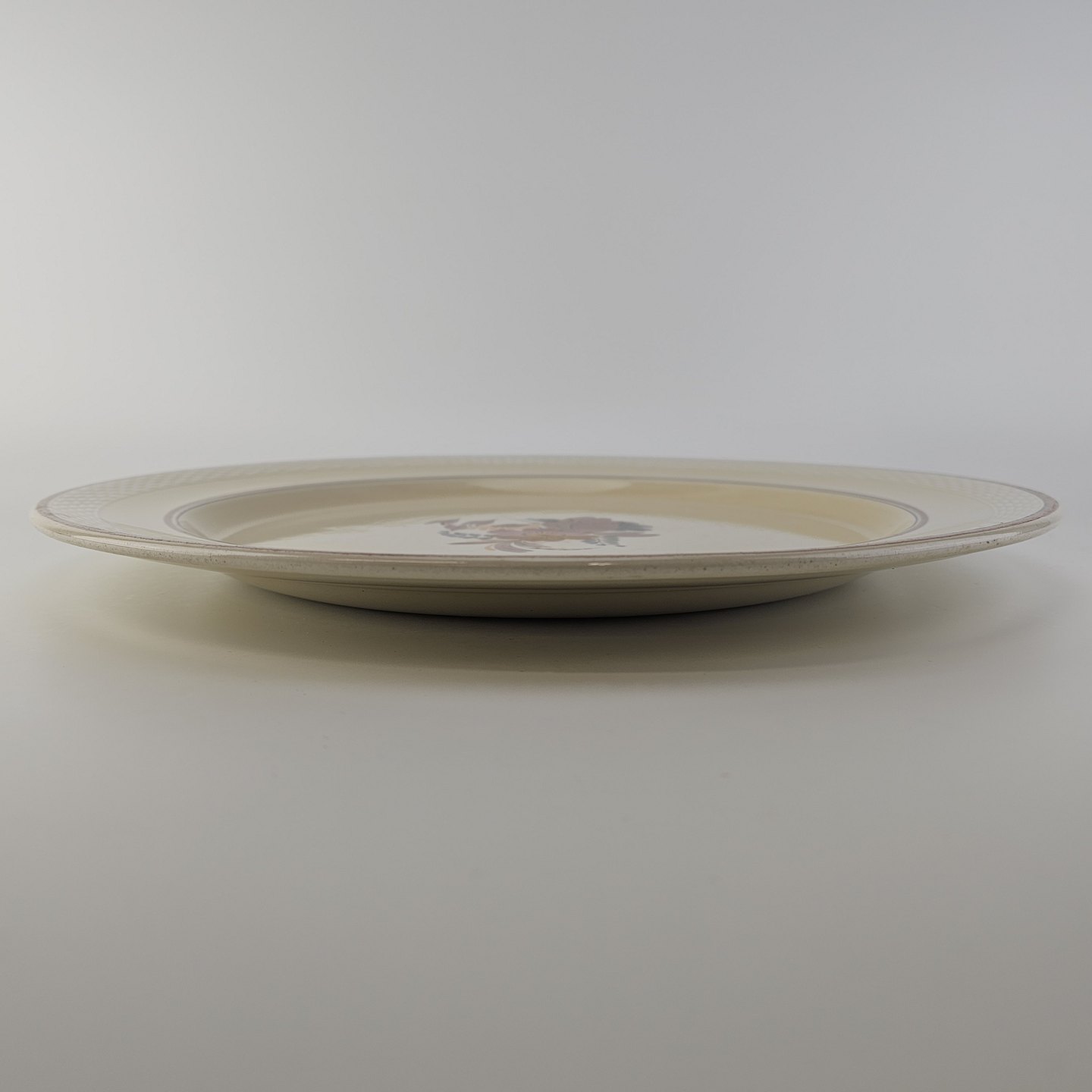 Beskrivelse: Rundt fad i fajance fra stellet Knud