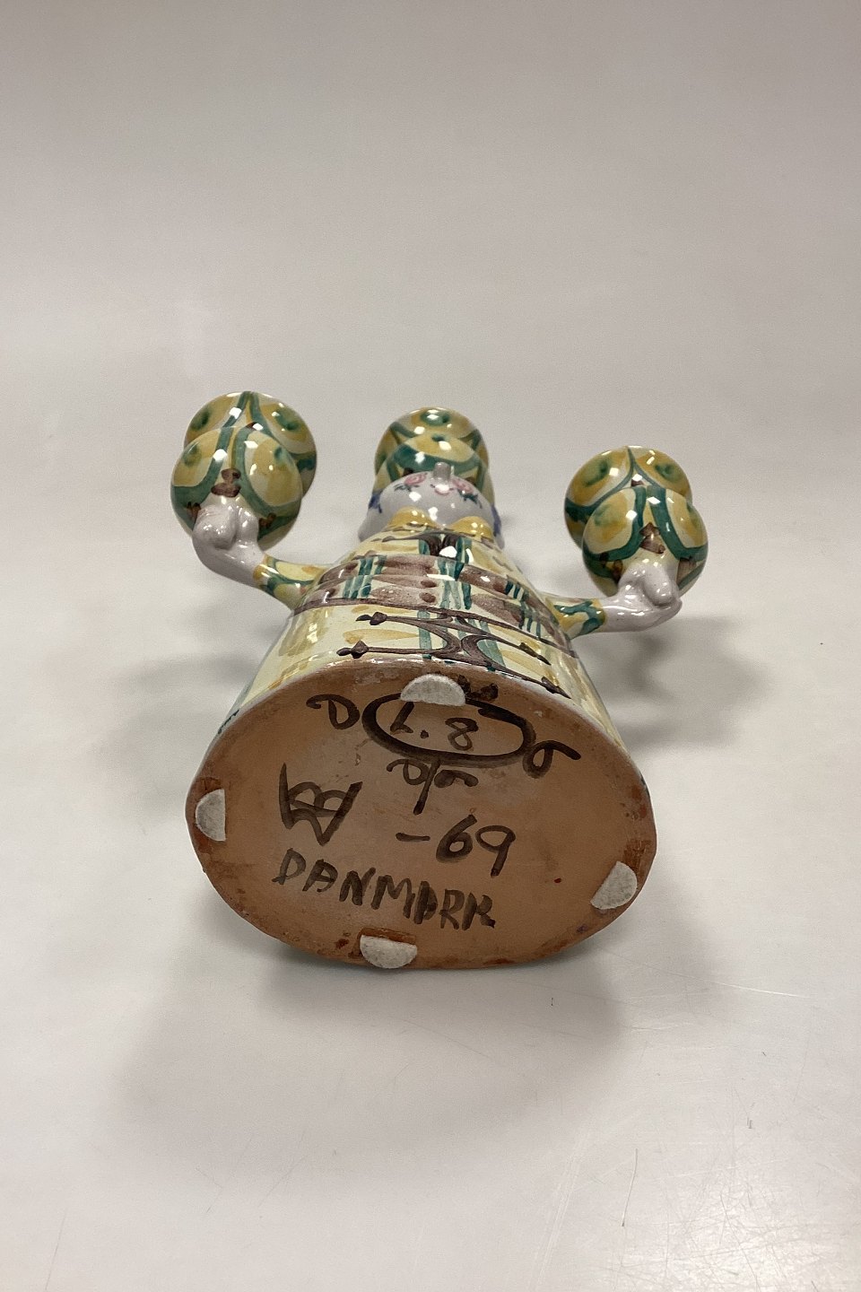 Description: Bjørn Wiinblad Figurine/Candlestick of Woman No. L8 from 1969. Possibility of 3 candles. Very fine and intact condition.