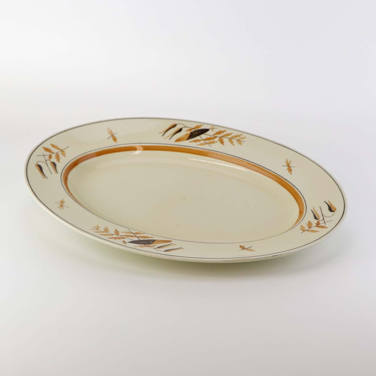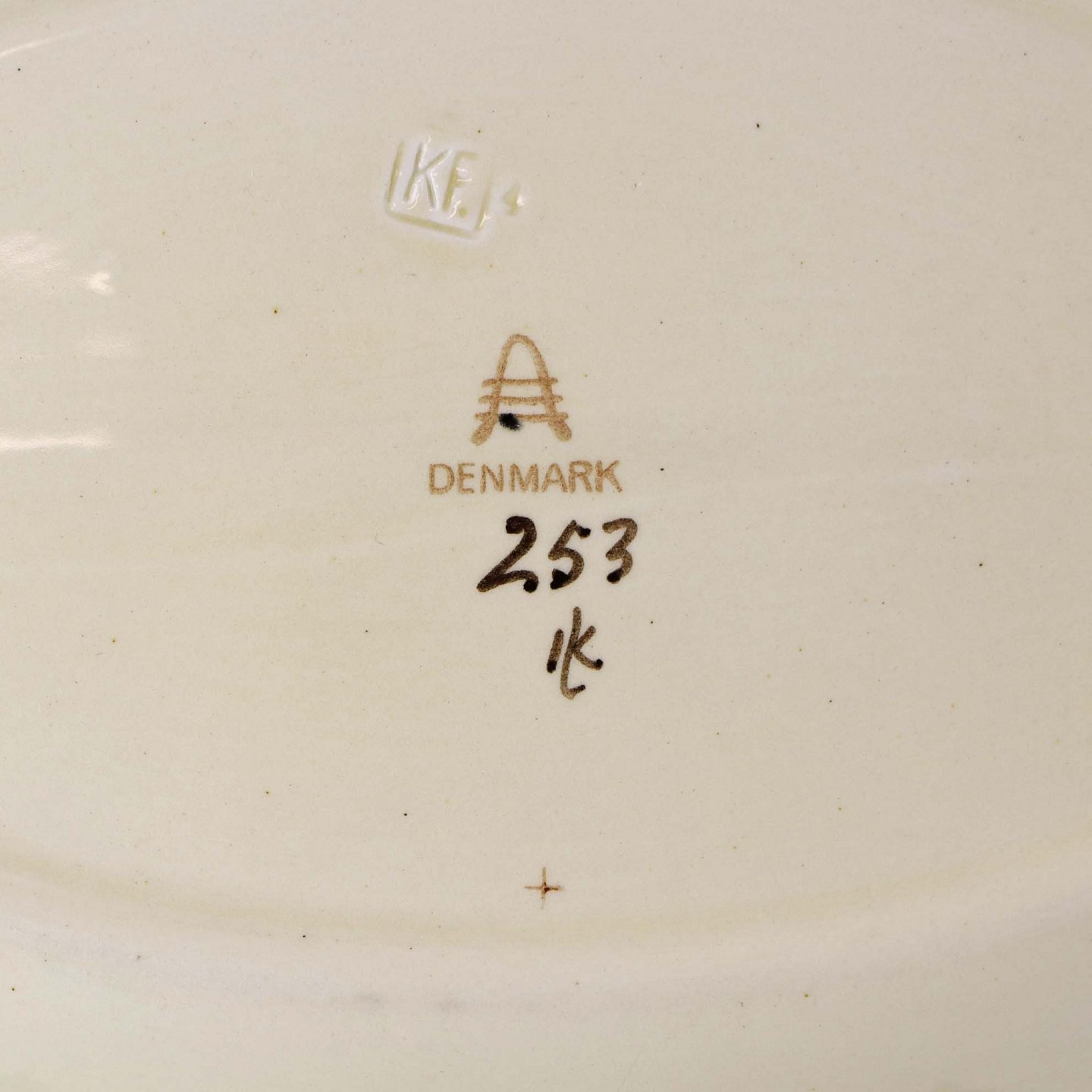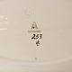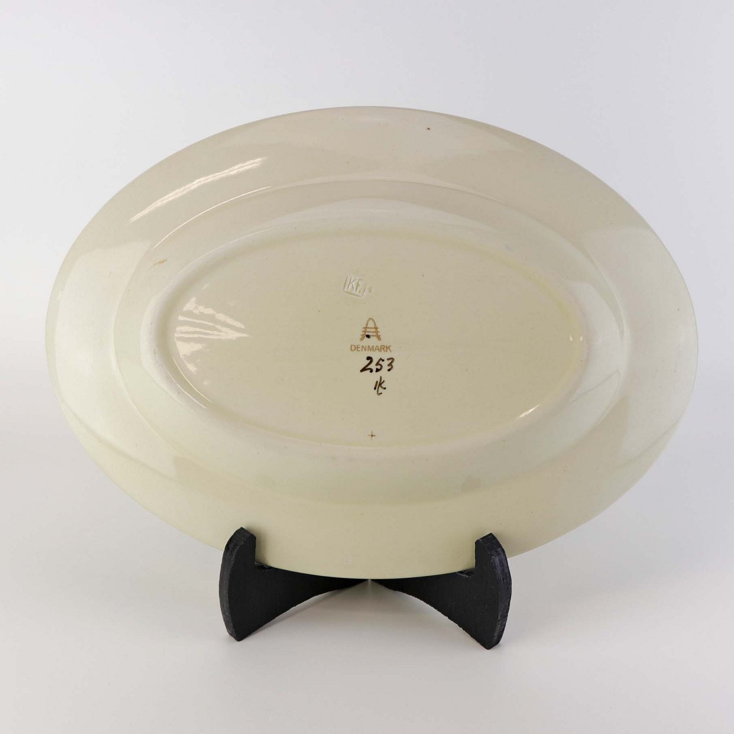 Beskrivelse: Lille ovalt serveringsfad i fajance fra stellet Åkjær, som blev fremstillet i perioden 1934-1939. Nr. 253