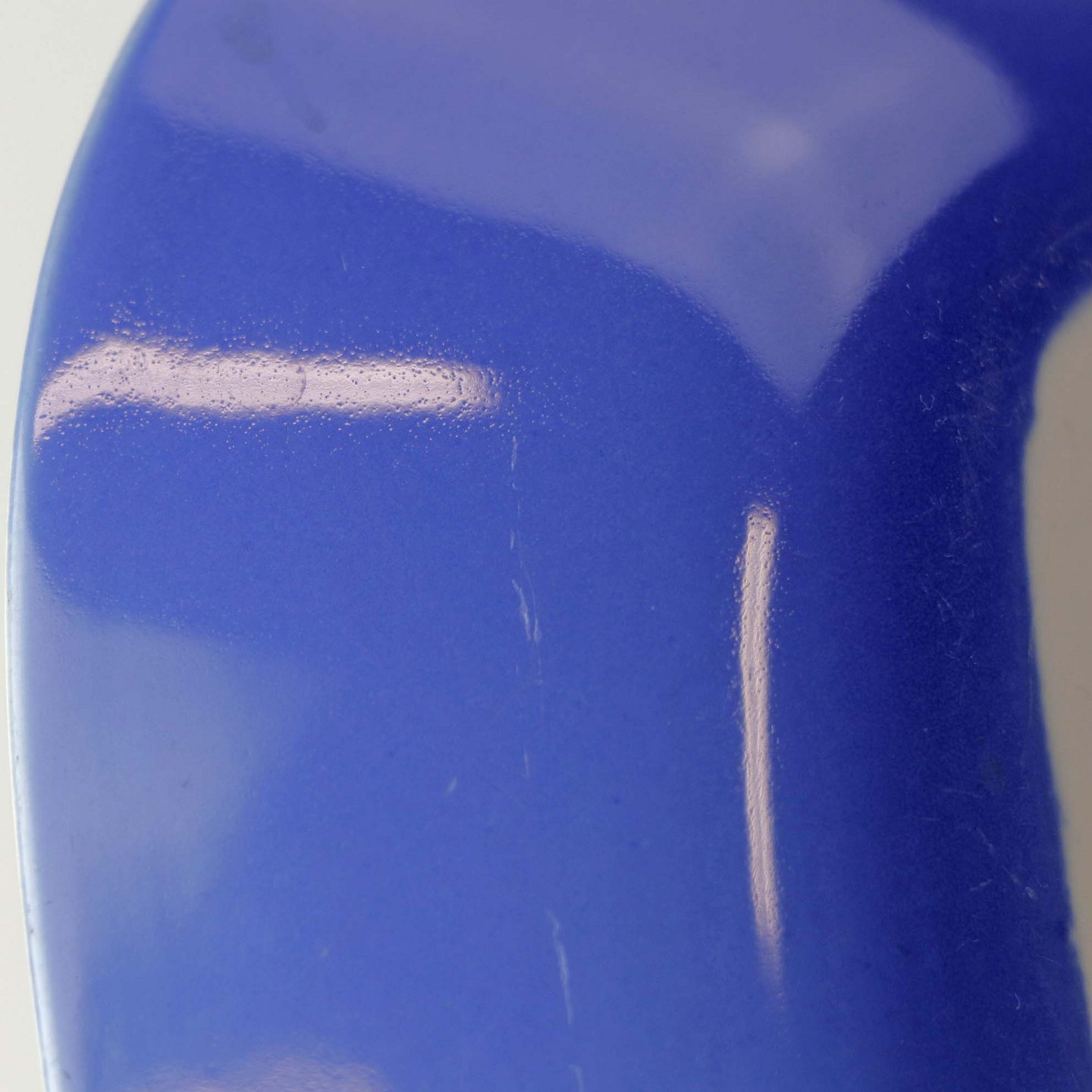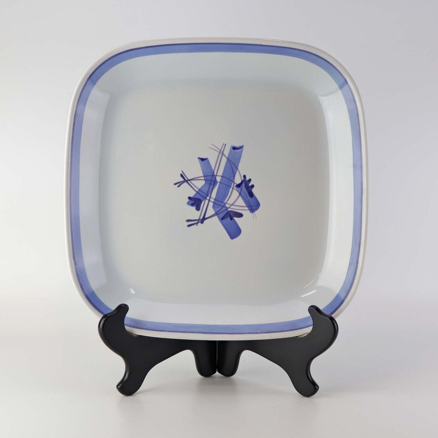 Fajancestel i stelform CA med dekoration af abstrakt motiv i blå og lyseblå på en råhvid baggrund.