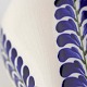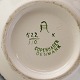 Fajancestel med dekoration af ranker af blåregn og blade på lys baggrund afsluttet med kant af runde blå pletter.