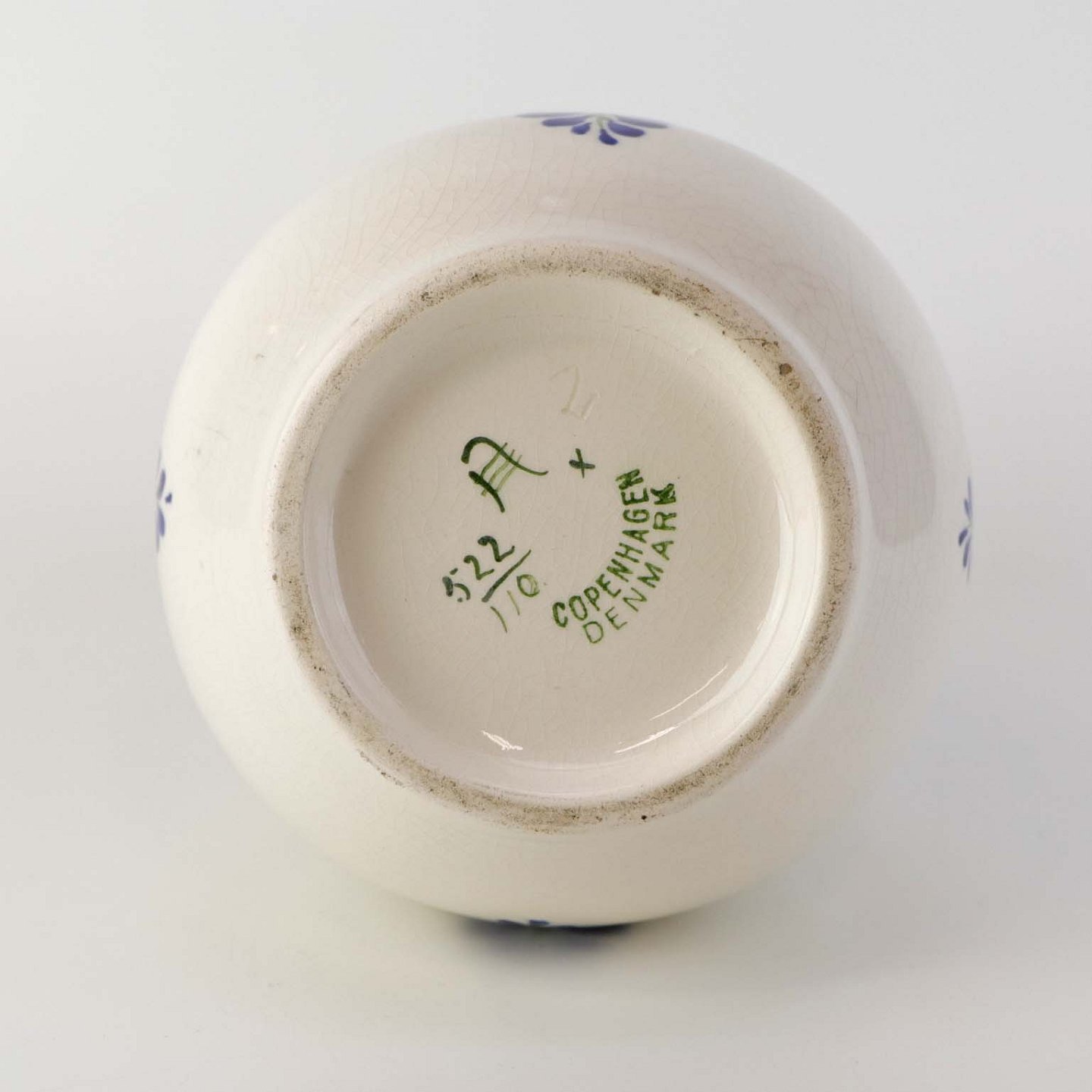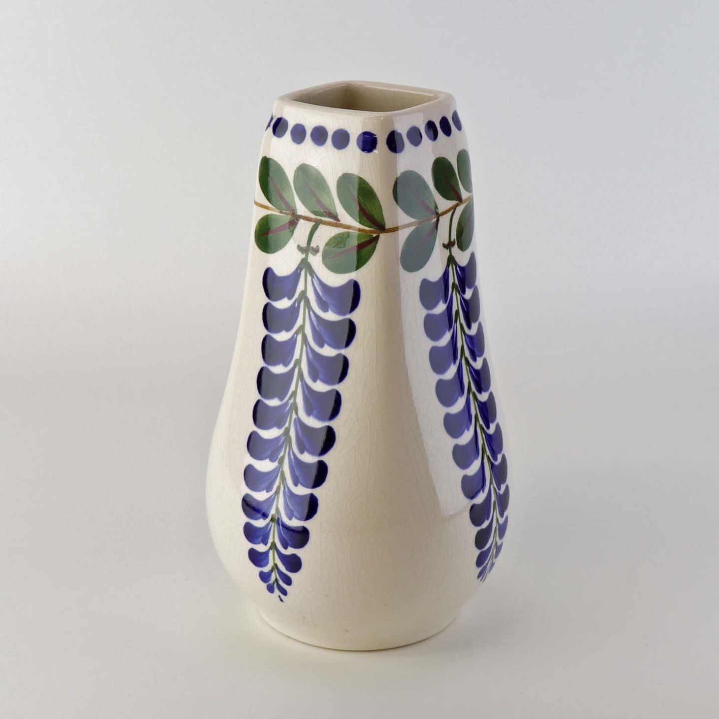 Beskrivelse: Høj vase i fajance med kantet hals fra stellet Blåregn. Stellet er fremstillet i perioden år 1903-1933. Nr. 522/110