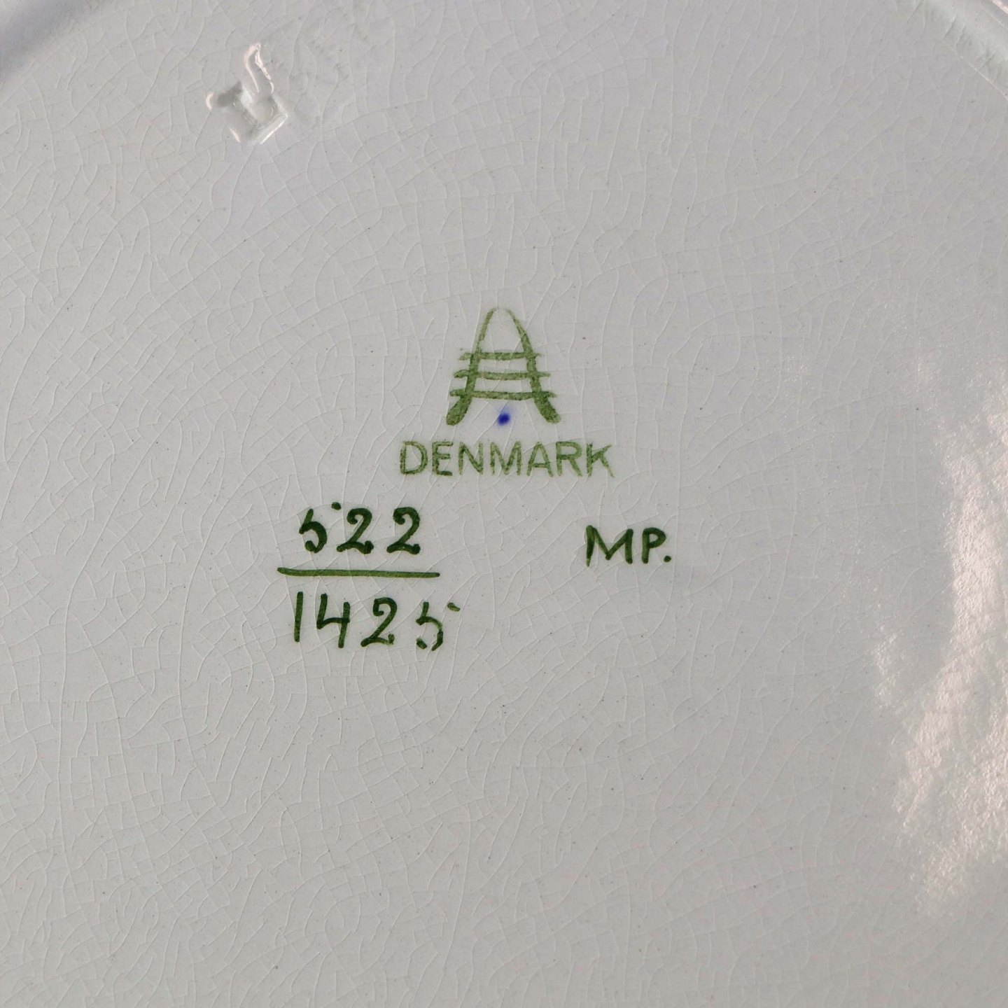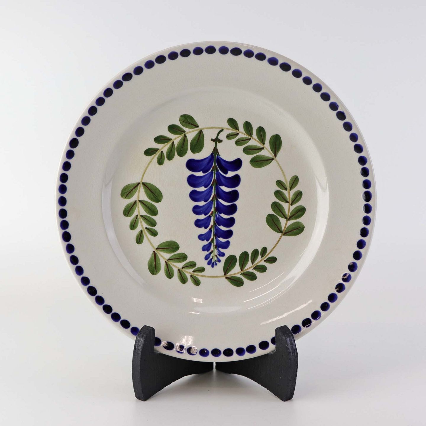 Beskrivelse: Flad frokosttallerken i fajance fra stellet Blåregn. Stellet er fremstillet i perioden år 1903-1933. Nr. 522/1425