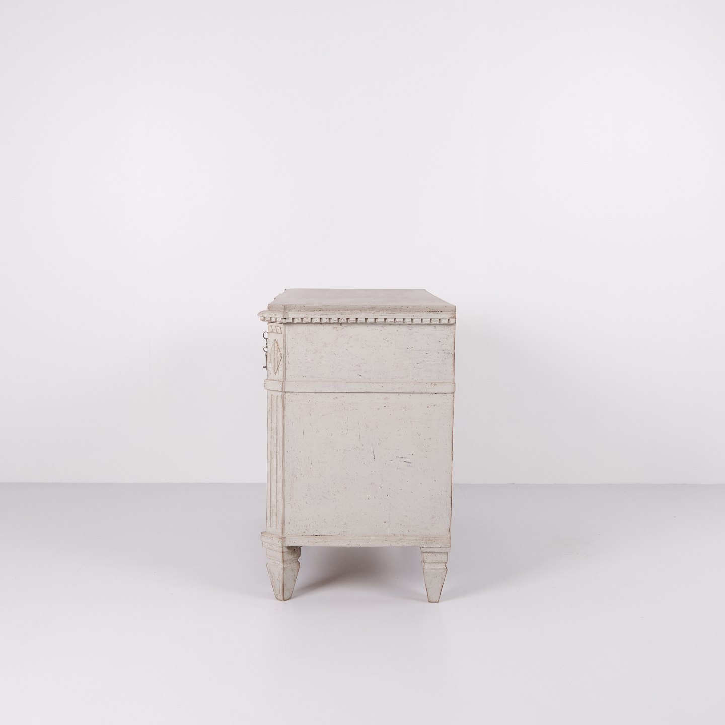 Et Par Gustavianske Kommoder gråhvid bemaling med Patina, År 1790