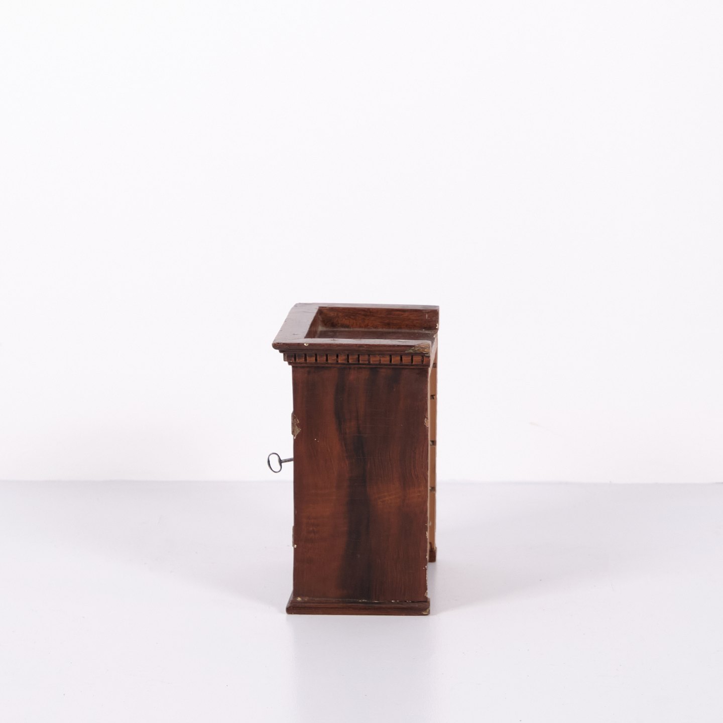 Beskrivelse: Antikt miniaturemøbel i åremålet fyrretræ med håndsmedede beslag fra 1840’erne. Unikt og dekorativt samlerobjekt med historisk karakter.