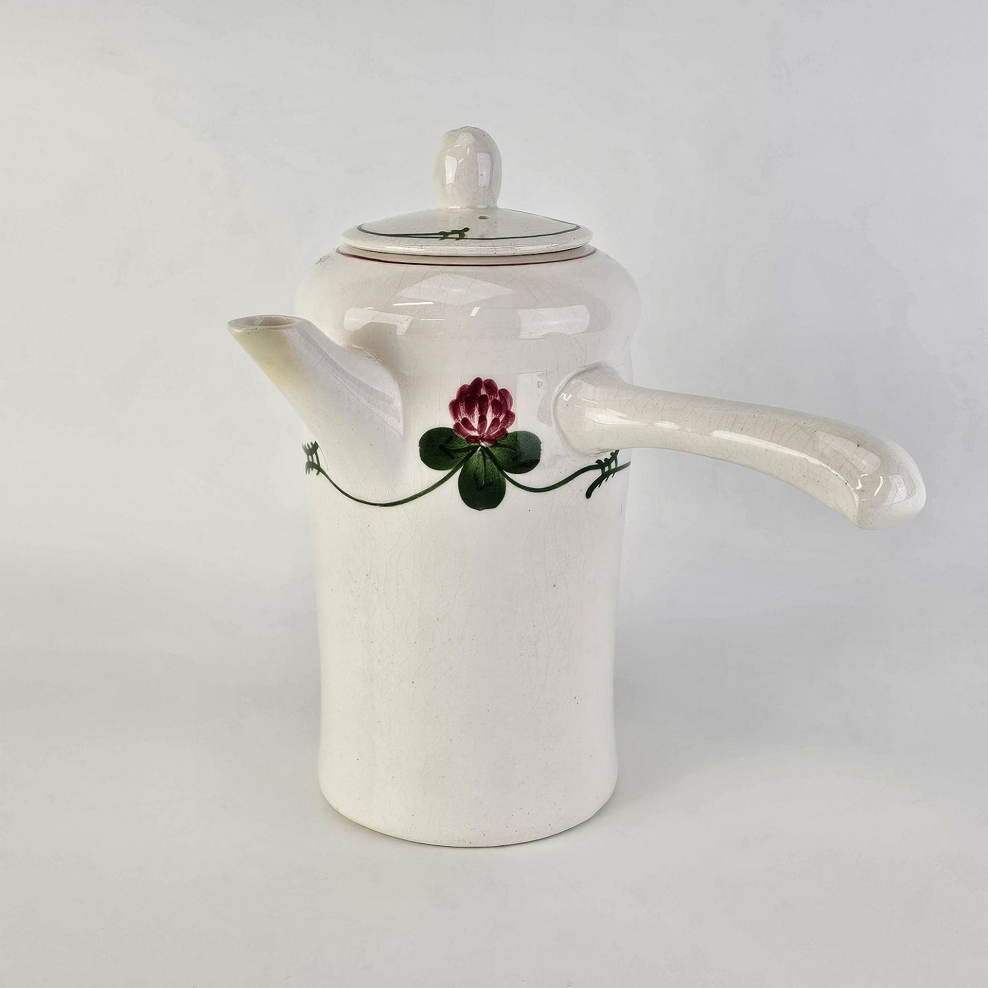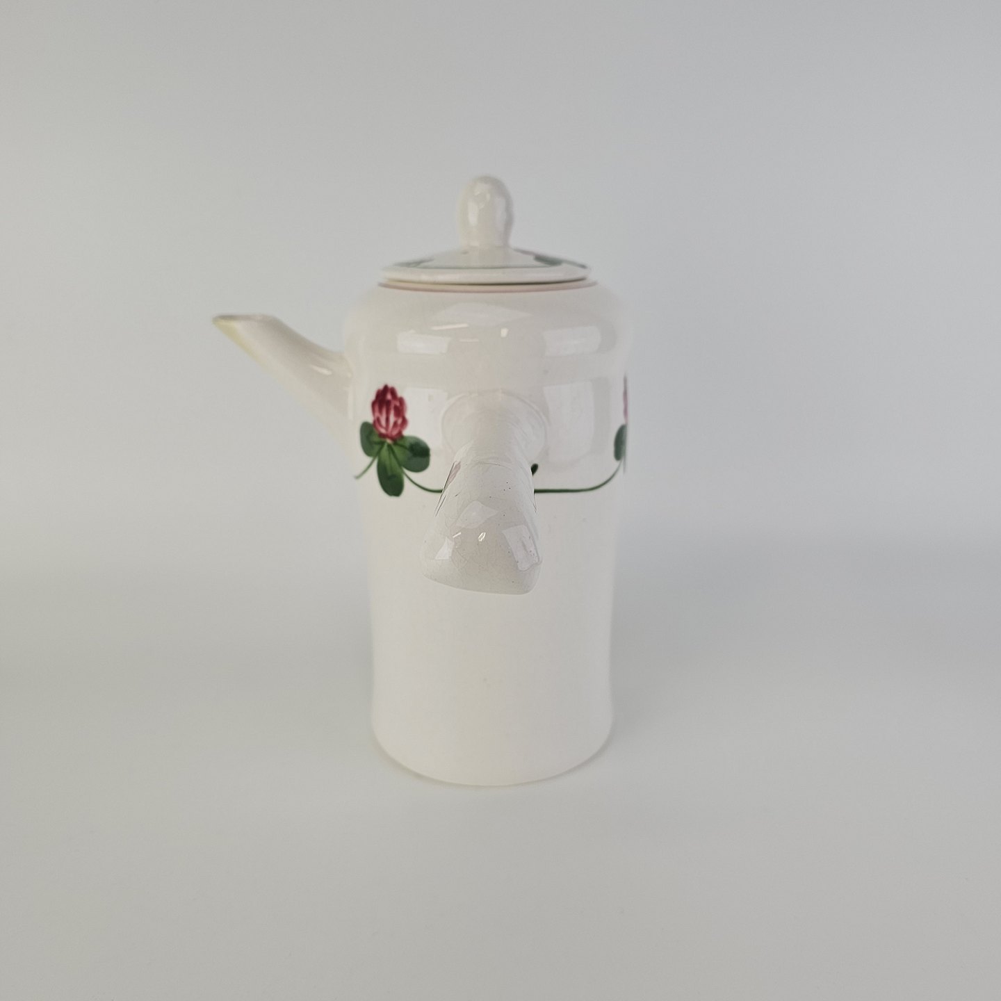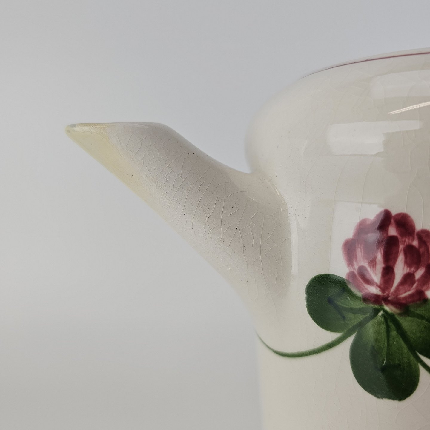 Kløver er fajancestel med motiv af rødkløver på lys baggrund.