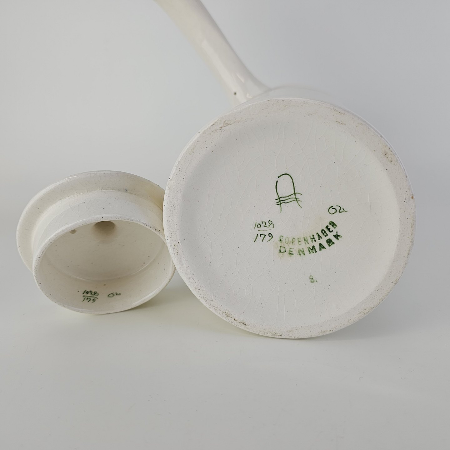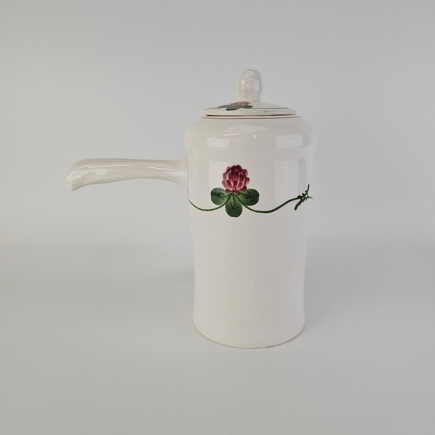 Beskrivelse: Kande i kunstfajance fra stellet Kløver. Nr. 1028/179