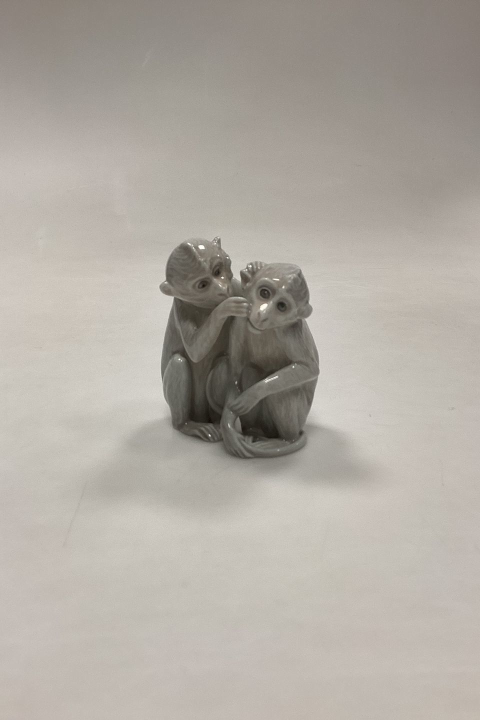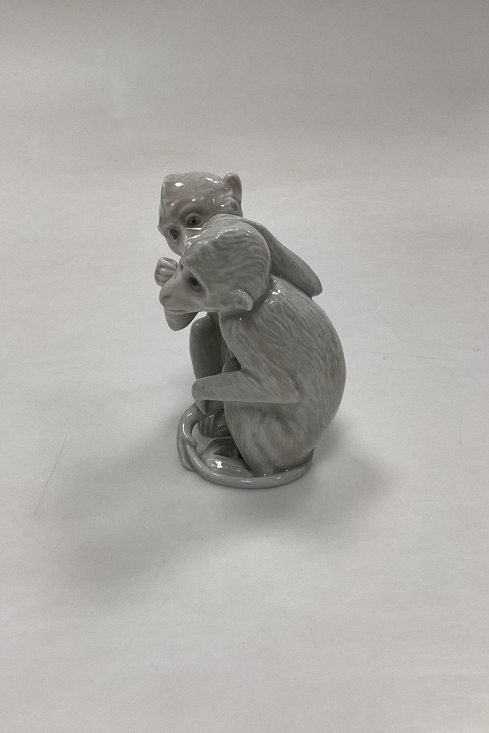 Beskrivelse: Bing og Grøndahl Figur Abepar No. 1667 eller 1524. Designet af Ingeborg Plockross Irminger. Figuren er nummeret med den højre abes figurnummer. Farve: gråhvid.