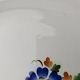 Hvidt fajancestel i stelform Sterling med motiv af blå blomster og blå prikker på kanten.
