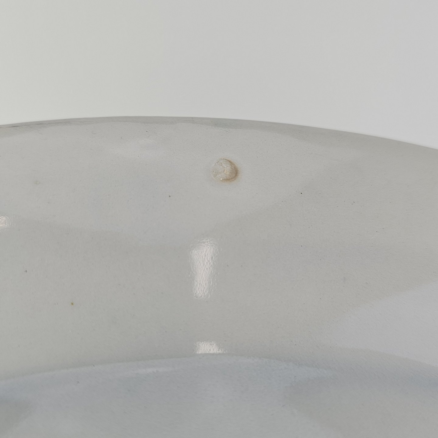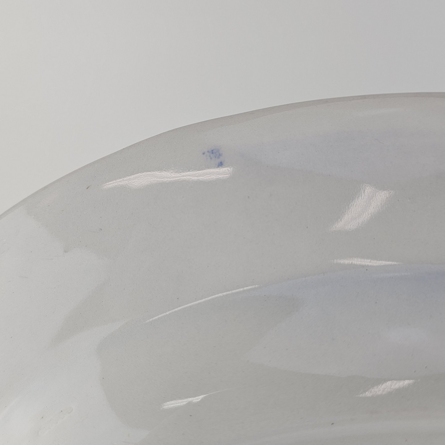 Hvidt fajancestel i stelform Sterling med motiv af blå blomster og blå prikker på kanten.