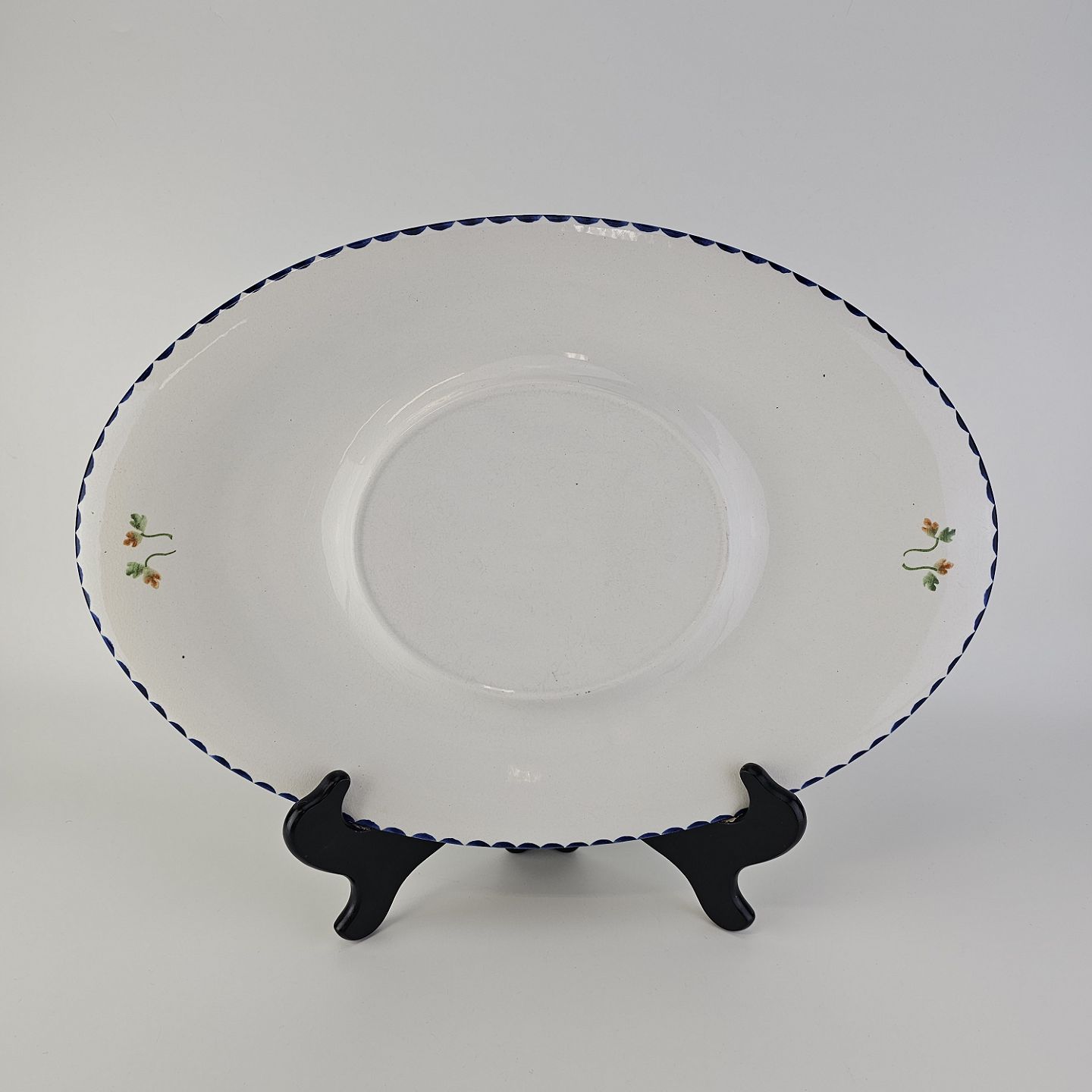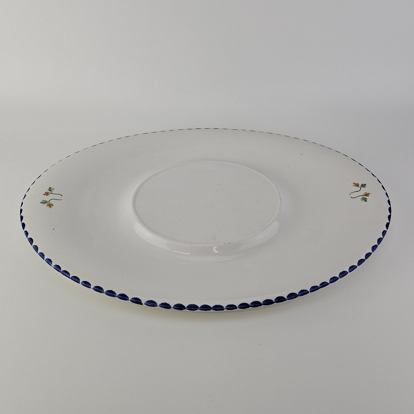 Beskrivelse: Fad til terrin i fajance fra stellet Geranium II fremstillet i perioden 1927-1940.