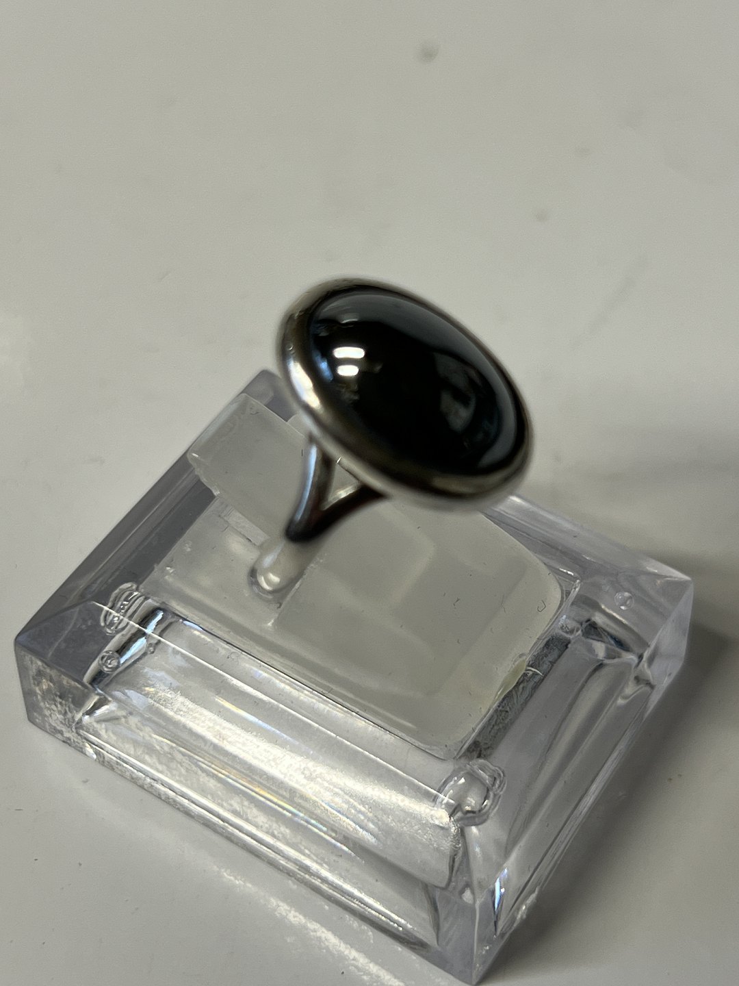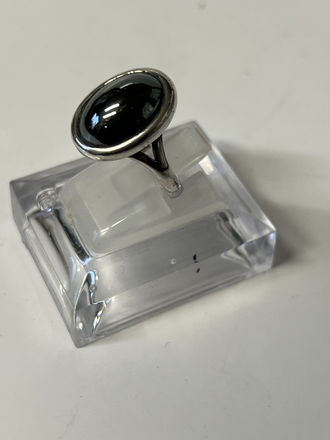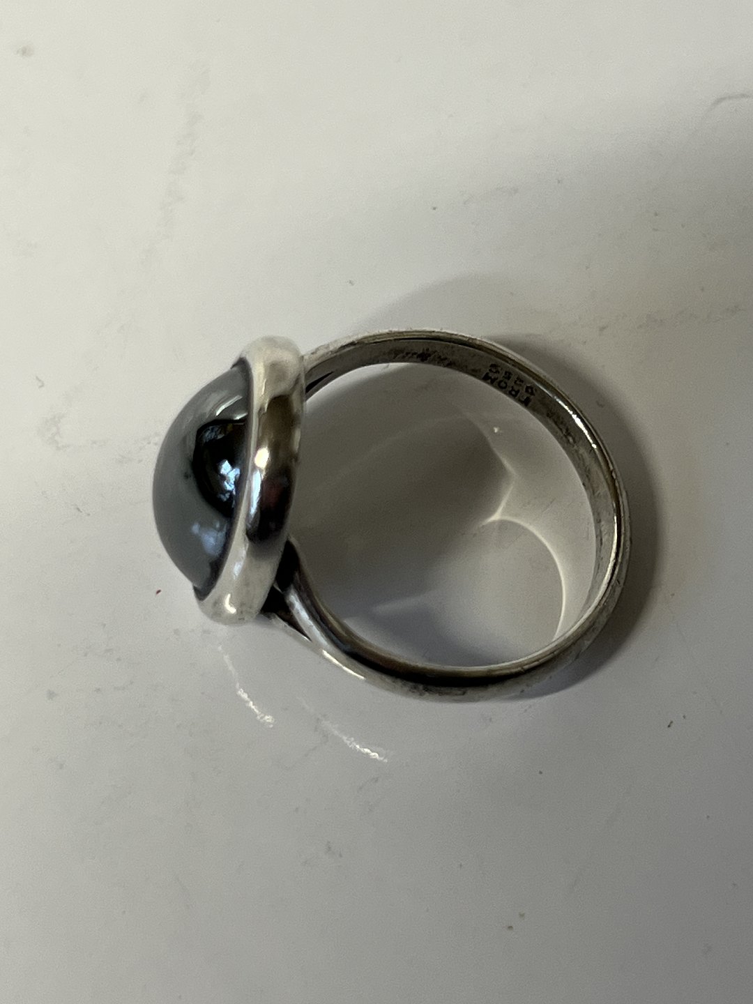 Beskrivelse: Damering i sølv med Blodsten