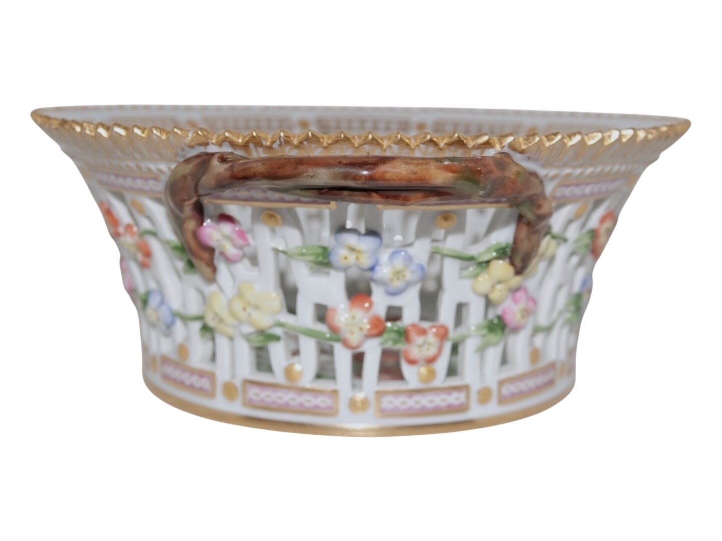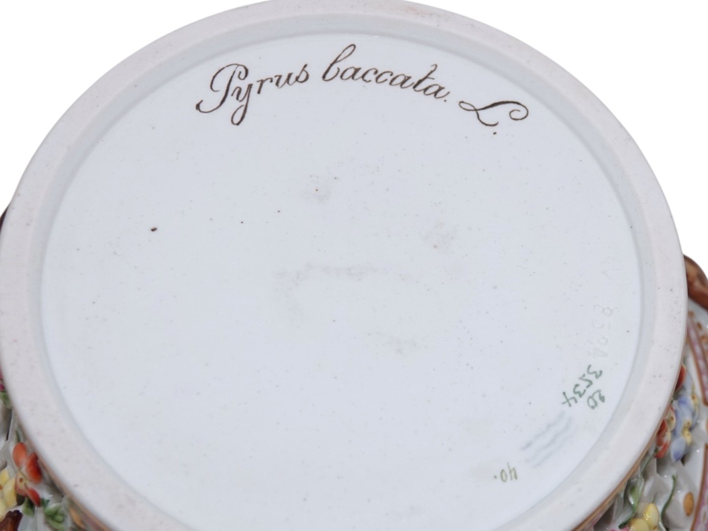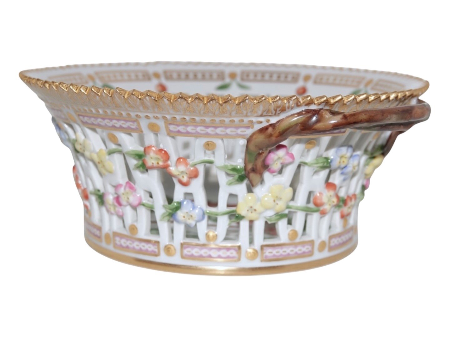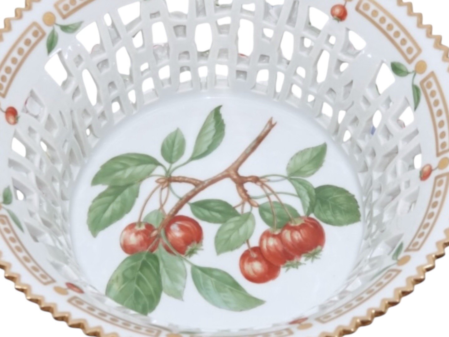 Beskrivelse: Royal Copenhagen Flora Danica, rund frugtkurv.