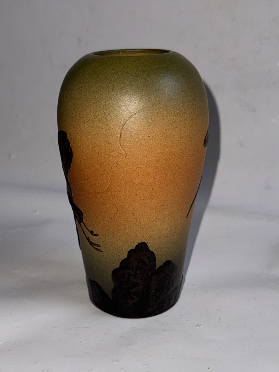 Beskrivelse: Vase i keramik fra den københavnske lervarefabrik Peter Ipsen ca. 1925. Dekoreret med en stor flyvende fugl. I god stand. Lille “nålestik” på bundens kant (se foto). Fabriksmærket på bunden med P. Ipsen Enke logo (krone over PIE) samt modelnummer 647. H. 14,7 cm.