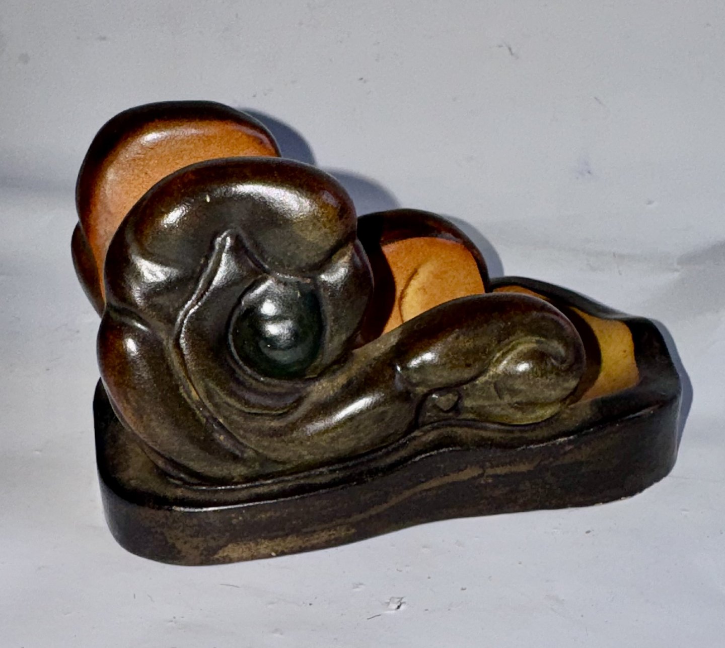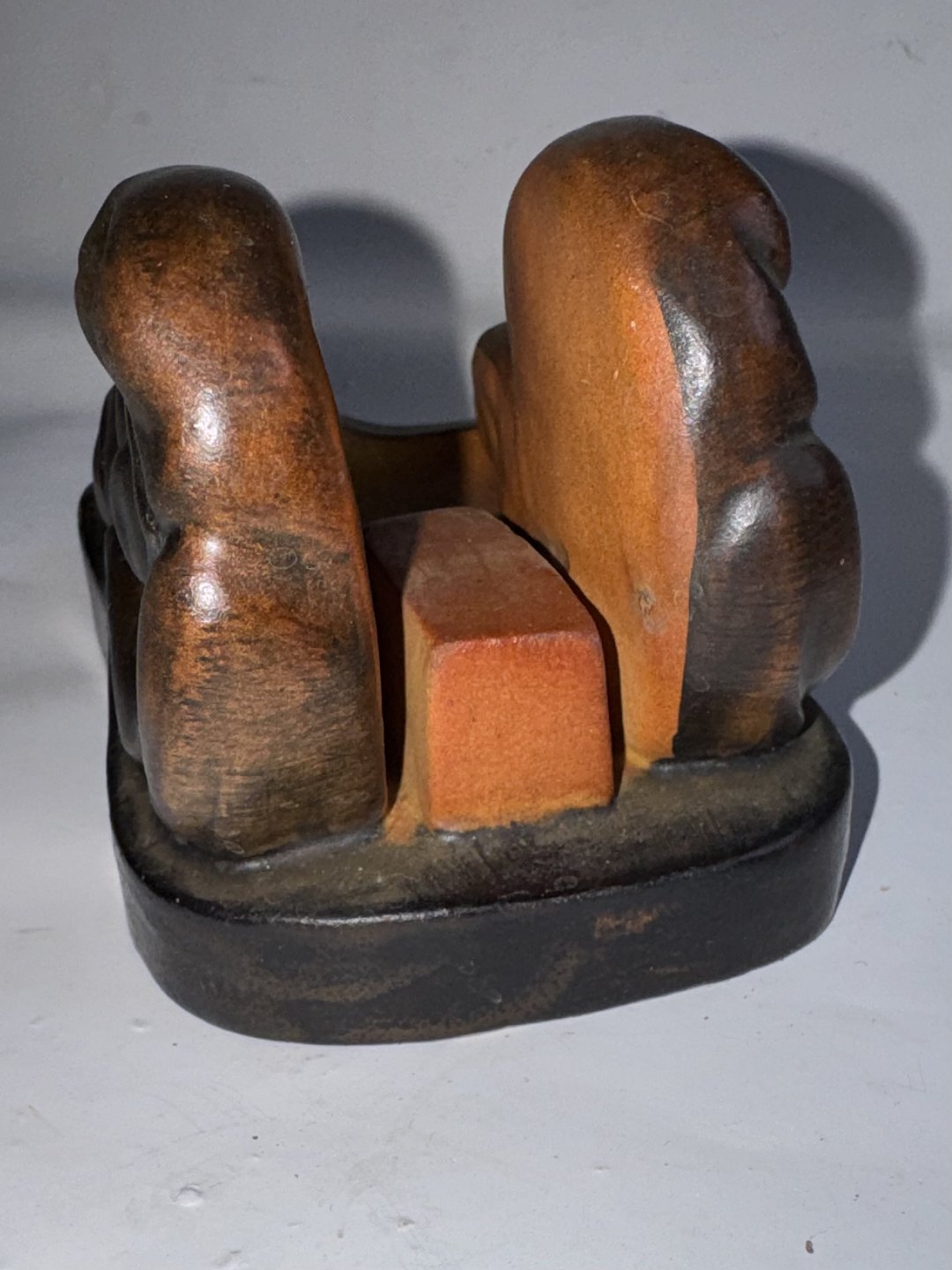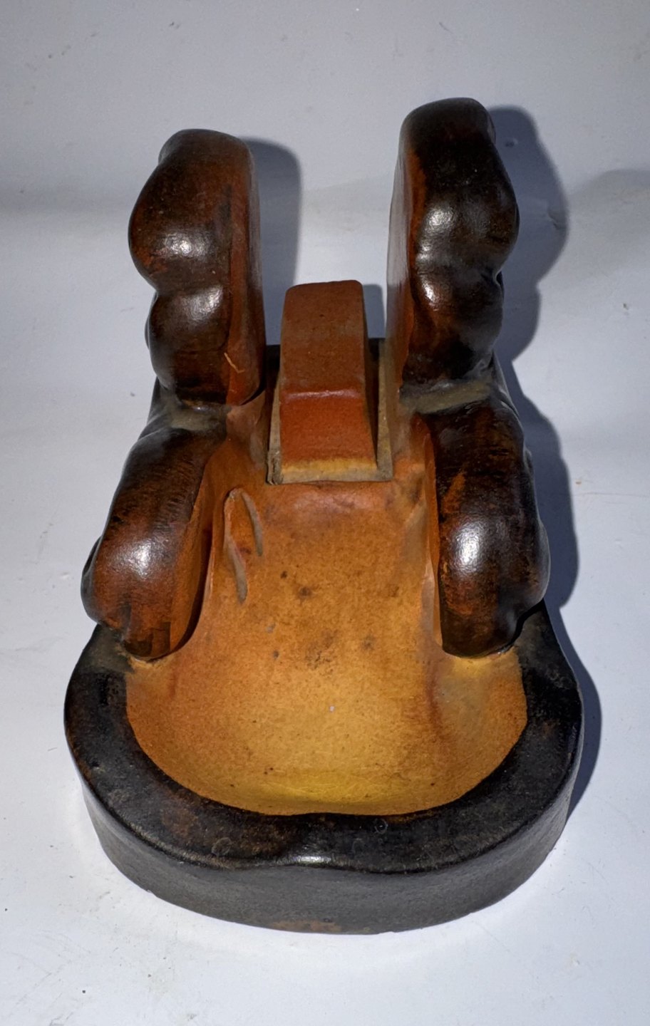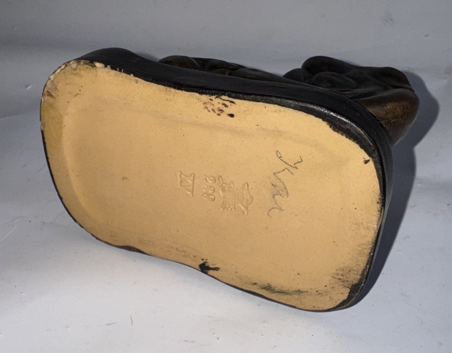 Tændstikæske holder i keramik fra Peter Ipsens Enke. Fremstår i god stand uden skader. Har dog lidt brugsspor på kanten - et par overflade “nålestik”. Fabriksmærket på bunden med fabrikkens logo PIE samt en krone og modelnummer 239. Mål: H. 6,6 cm, B. 6,8 cm og L. 11,5 cm.
