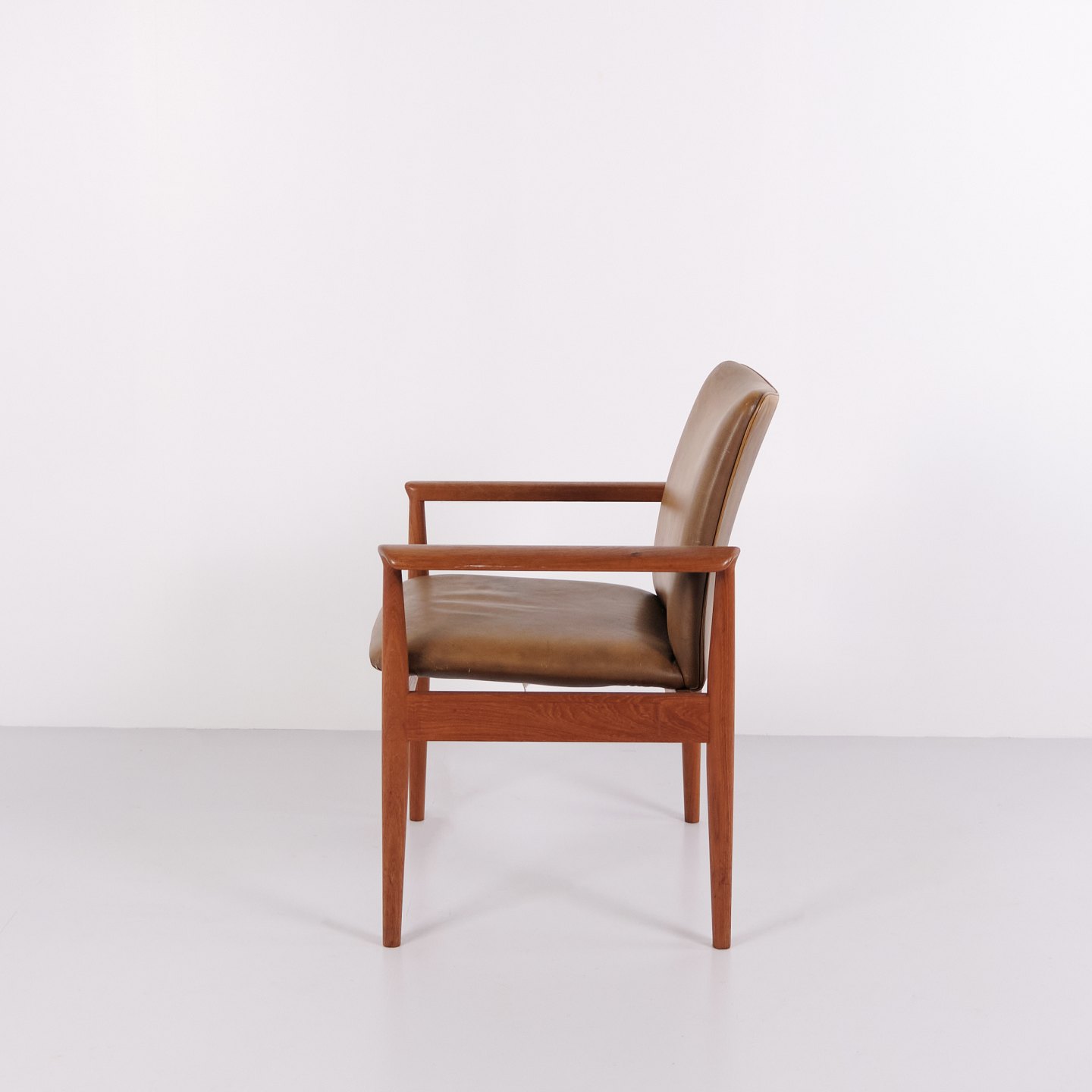Finn Juhl Diplomat Armstol i Teak og Patineret Læder for France & Søn, 1960erne