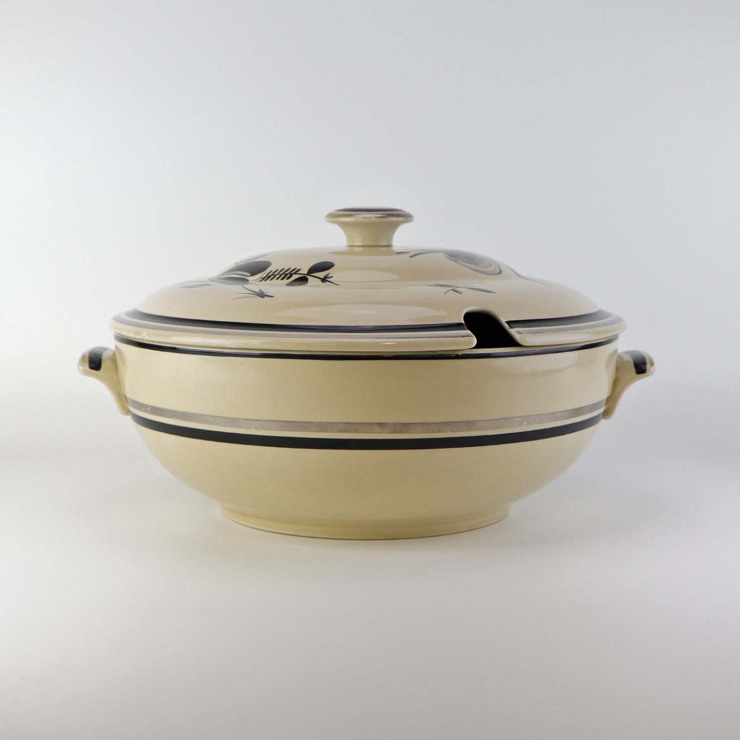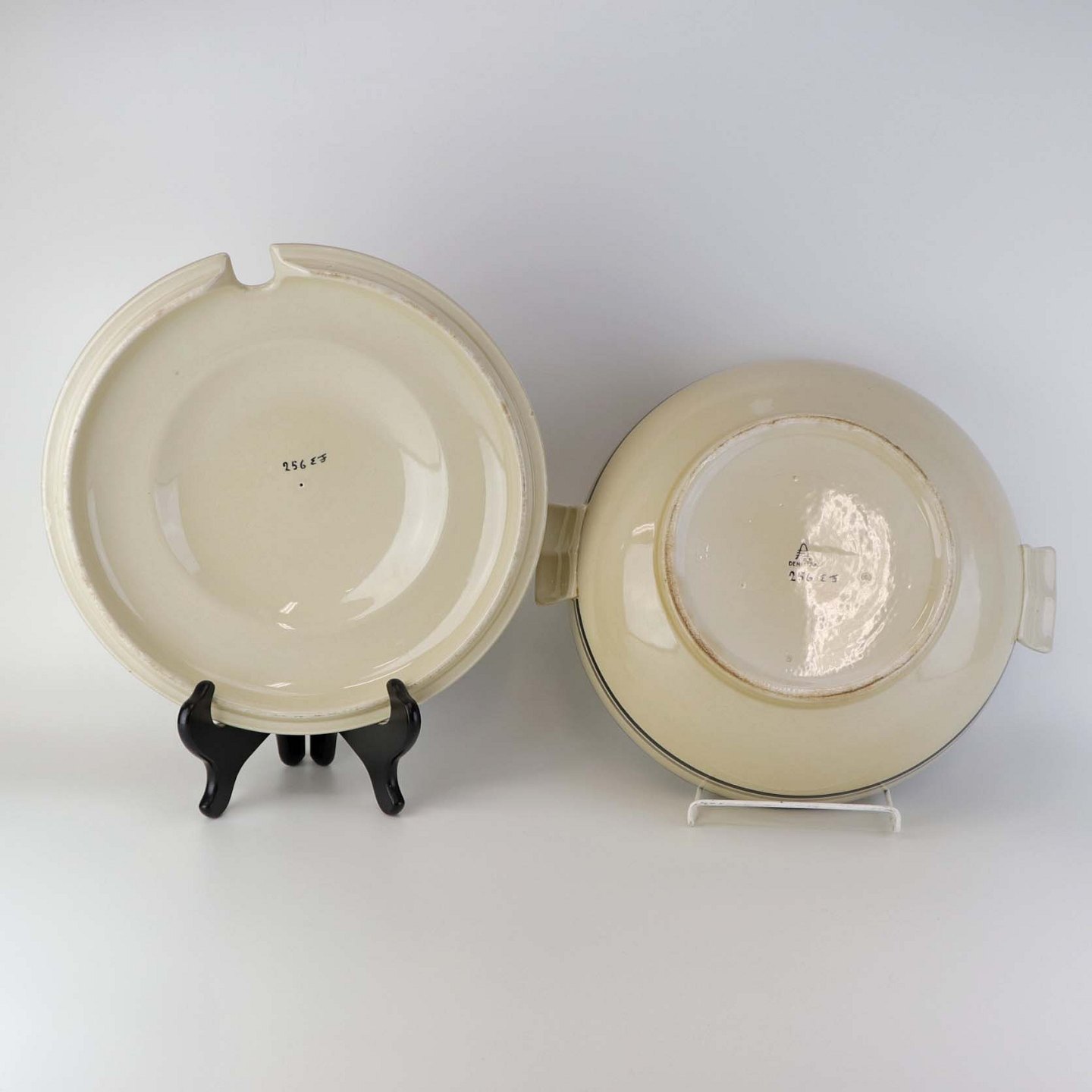 Beskrivelse: Suppeterrin i fajance fra stellet Dragsholm fremstillet i perioden 1934-1965. Nr 256