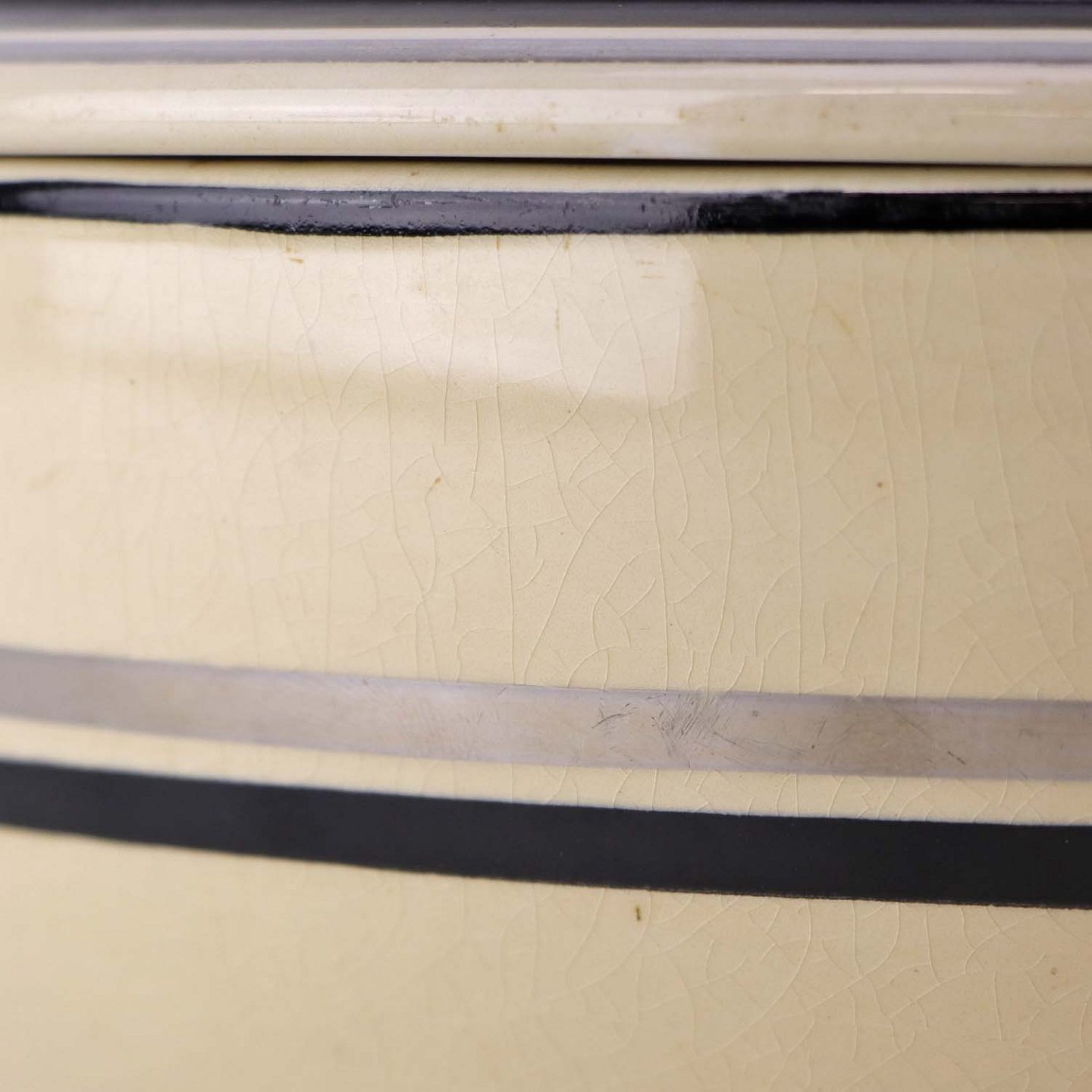 Fremstår med krakkeleringer i glasuren, lettere ridser i bunden af terrinen, brugsspor på dekorationen samt ujævnheder i glasuren.