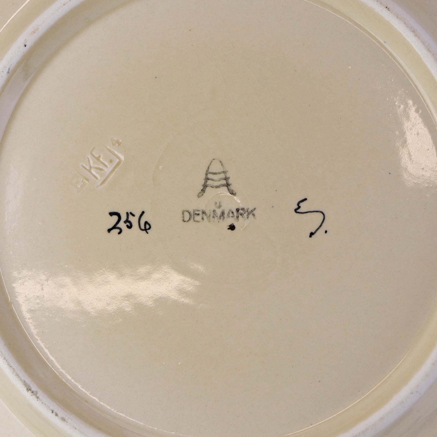 Beskrivelse: Rundt kagefad i fajance fra stellet Dragsholm fremstillet i perioden 1934-1965. Nr 256