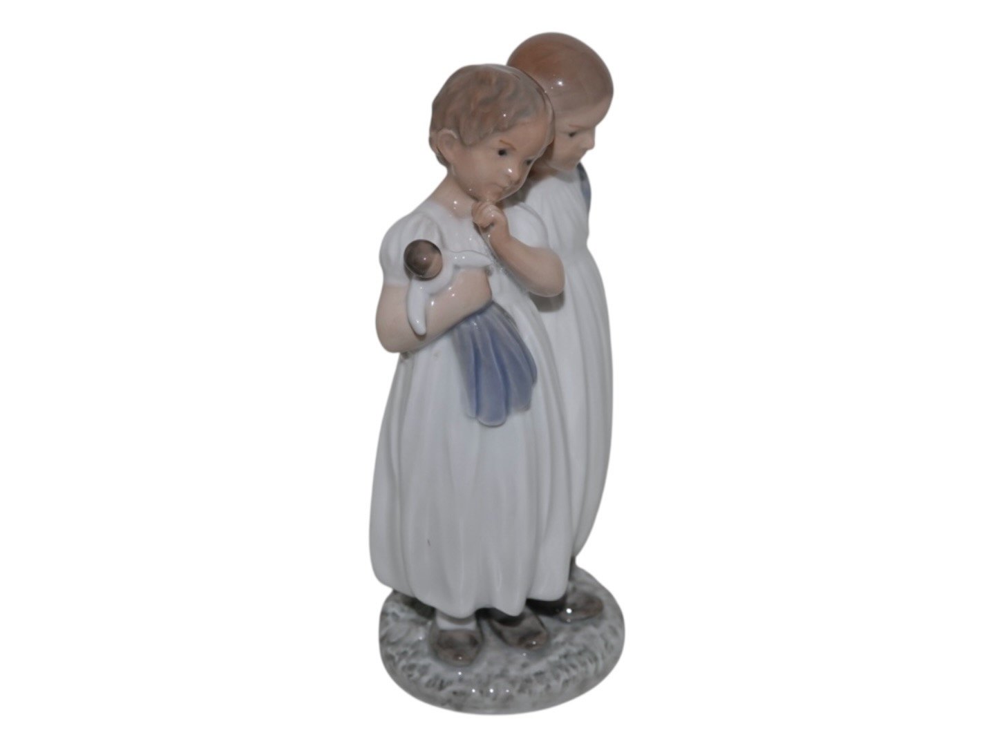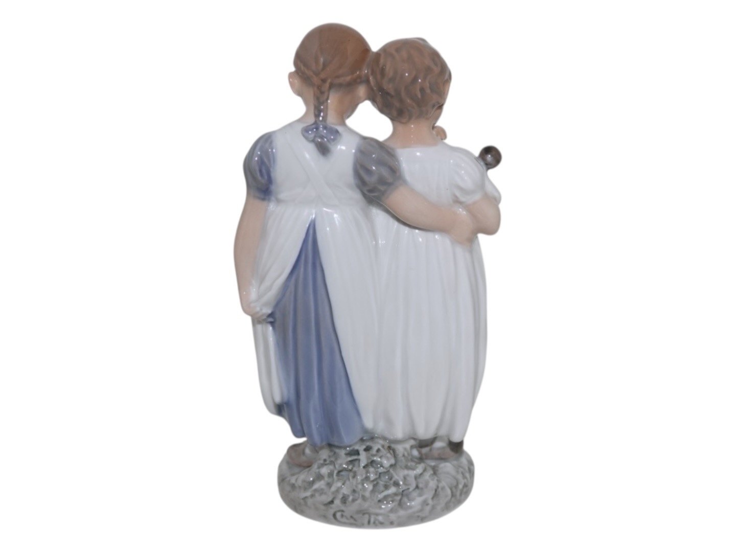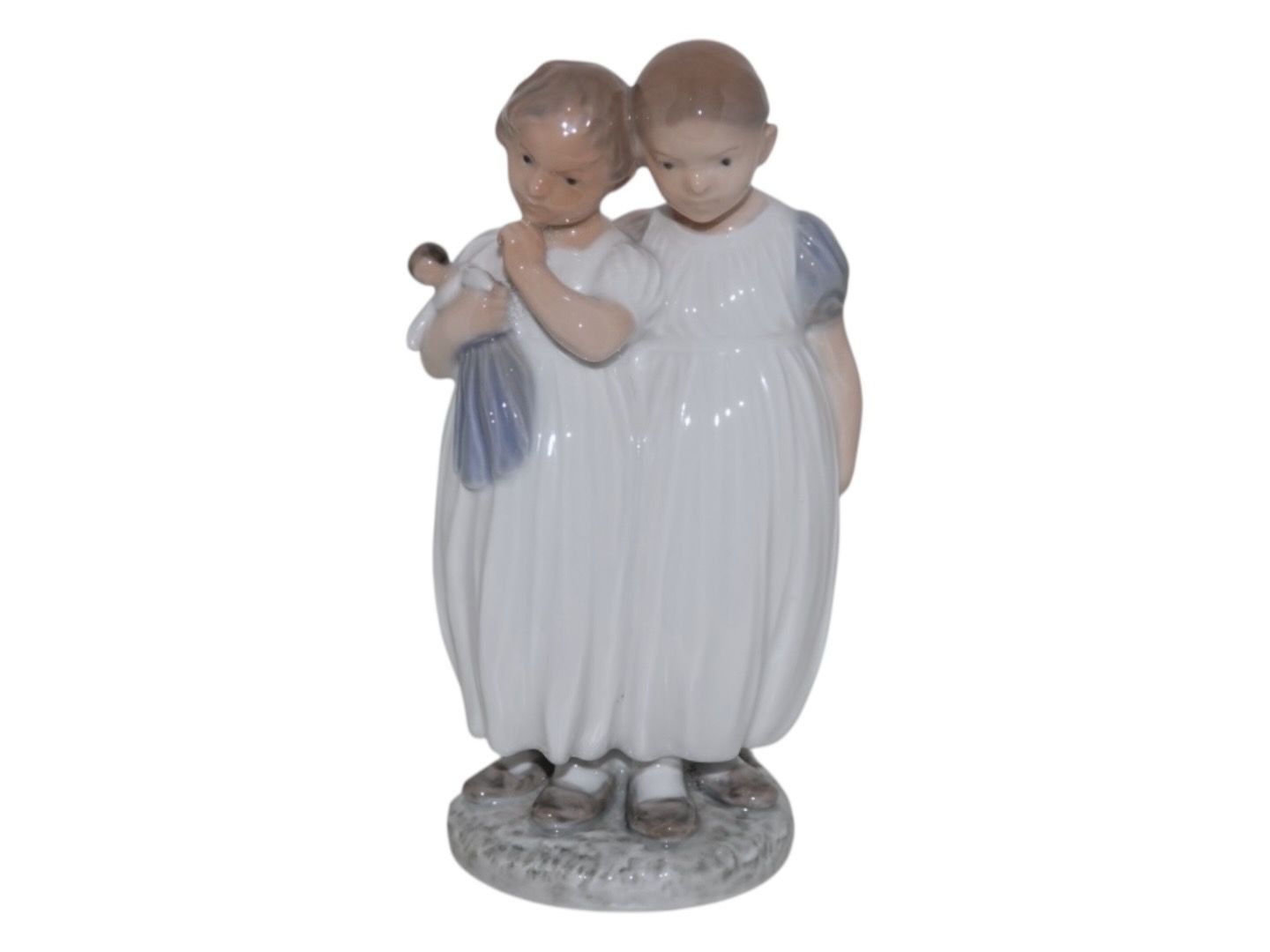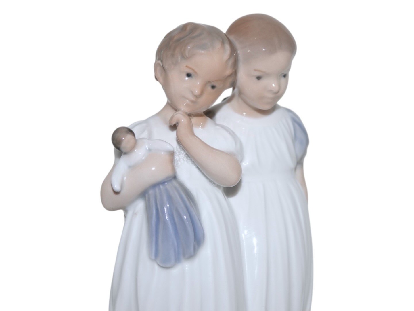 Beskrivelse: Royal Copenhagen figur, to piger der står med en dukke.