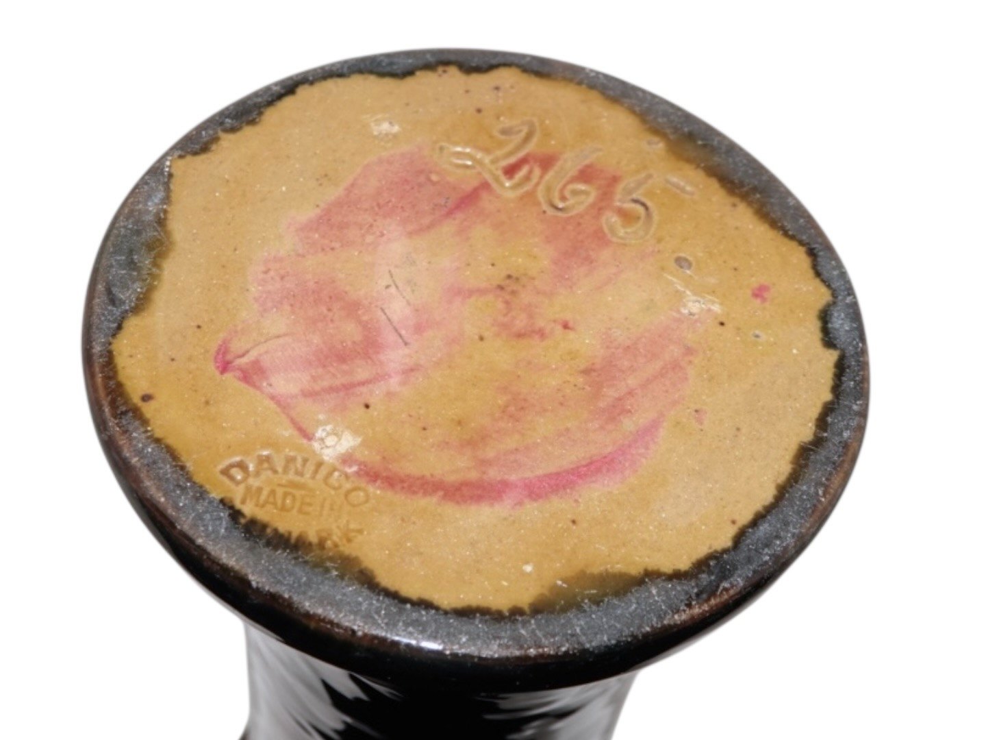 Beskrivelse: Danico keramik rødbrun høj vase med kohornsbemaling.