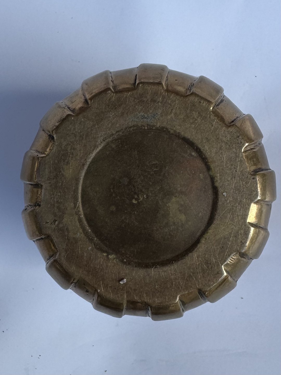 Beskrivelse: Bronce bæger i Art Deco stil. Fremstillet i Danmark i 1930’erne. I god stand. H. 8,9 cm Ø. 8,2 cm.