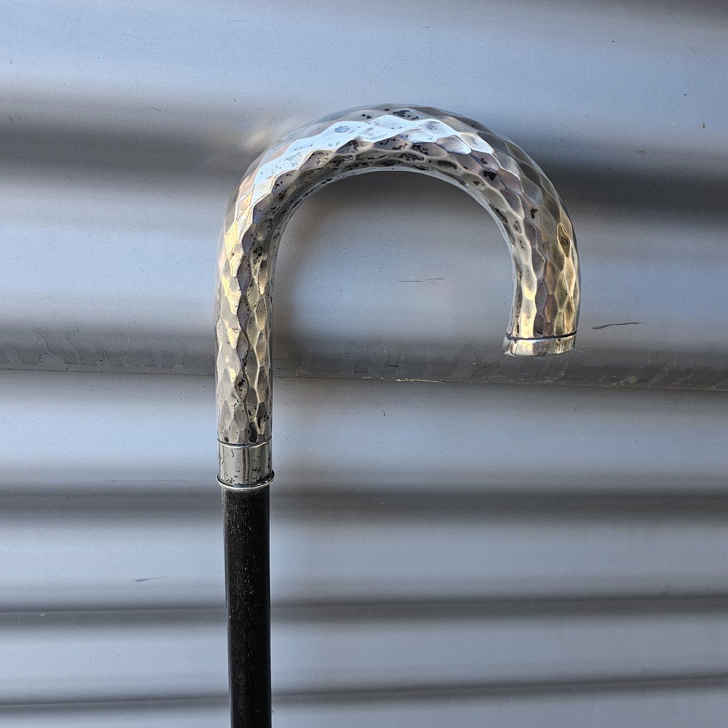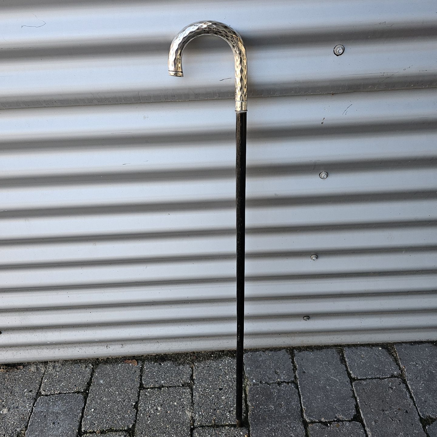 Beskrivelse: Stok i træ med buet håndtag i sølv, 830S